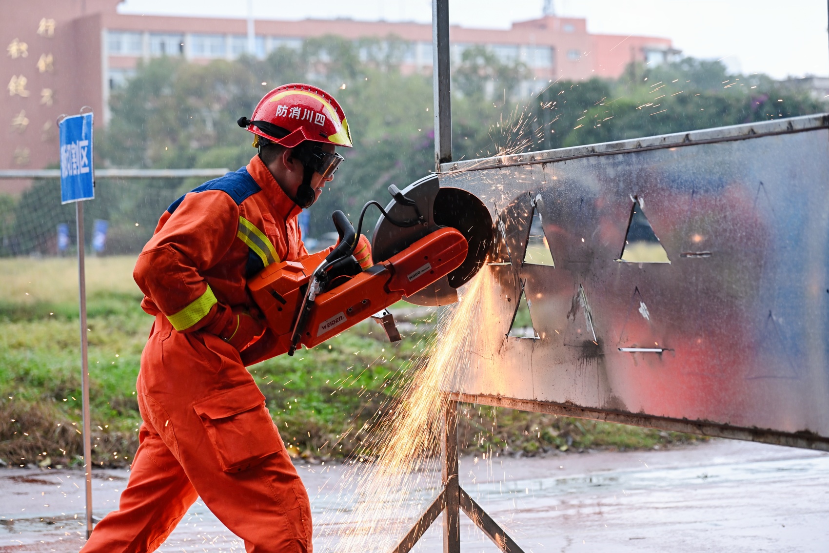 在消防技能科目中,选手们迅速穿戴装备、扑火转运,动作流畅如行云流水;地震救援环节,破拆操作精准高效,展现对复杂环境的快速应对能力;防洪抢险科目中,打桩模拟考验队员的体力与协作;医疗救护现场,止血复苏操作规范严谨,彰显生命至上的救援理念。