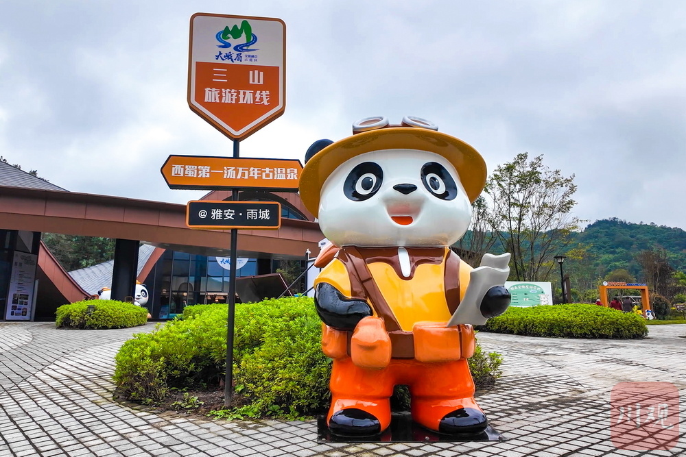 10月23日,沿省道104线来到雅安市雨城段的周公山服务区,沉浸于青山绿水间的“驿站”到处是浓郁的大熊猫元素。游客服务中心内,母婴室、医务室、警务室、休息区、投诉室等一应俱全;雨城非遗文化长廊内,藏茶、竹编、大熊猫文创等更是琳琅满目,格外惹眼。