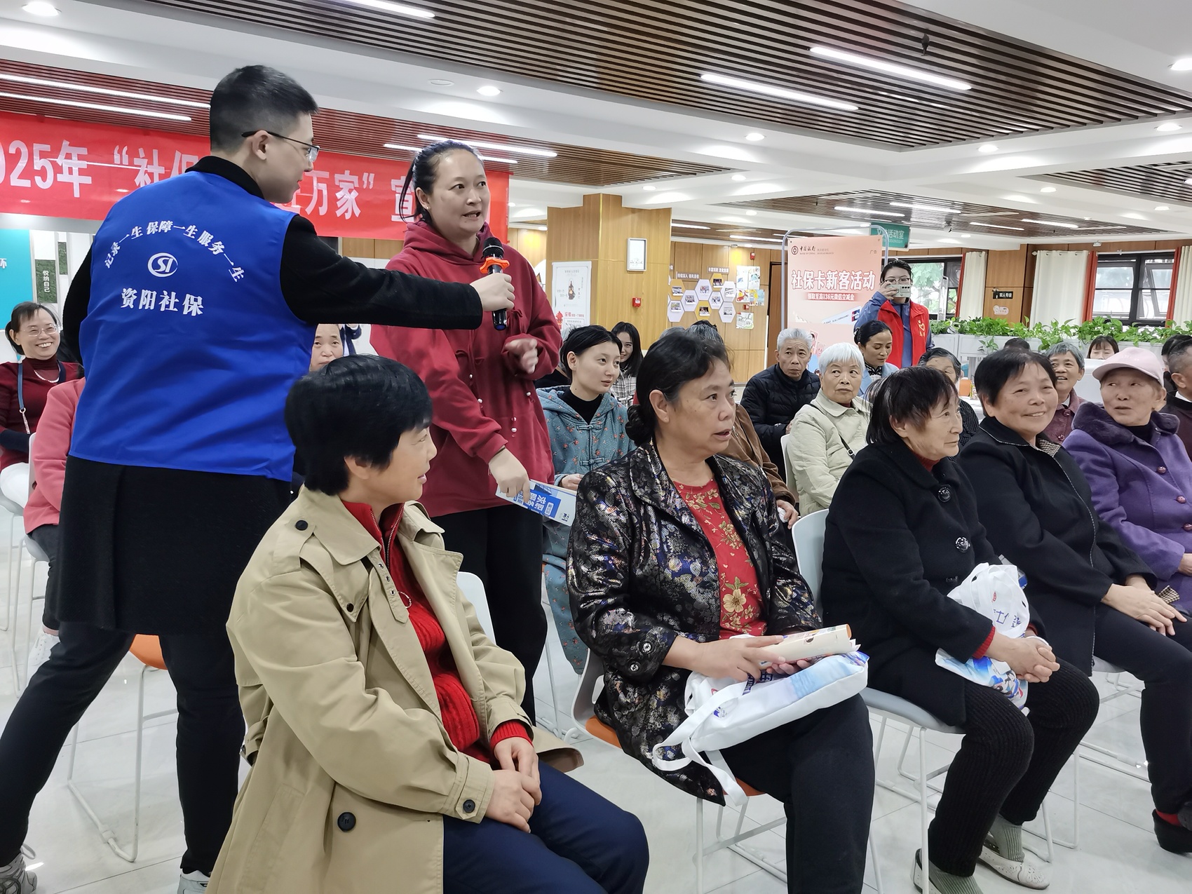当天,资阳市启动2025年“社保服务进万家”活动,雁江区人社局在拱城社区党群服务中心开展雁江主场活动,不仅有“一对一”的政策咨询、“面对面”的手机认证查询等社保服务,还有有奖知识问答赢好礼、学剪纸等环节,通过构建沉浸式、互动式、场景化的社保服务宣传形式,把社保服务送到老百姓身边。