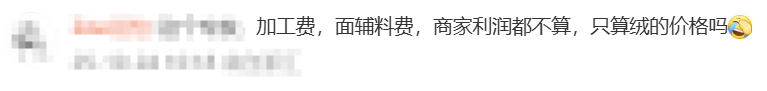 但也有网友对此不买账,认为一件羽绒服的成本不止绒本身。