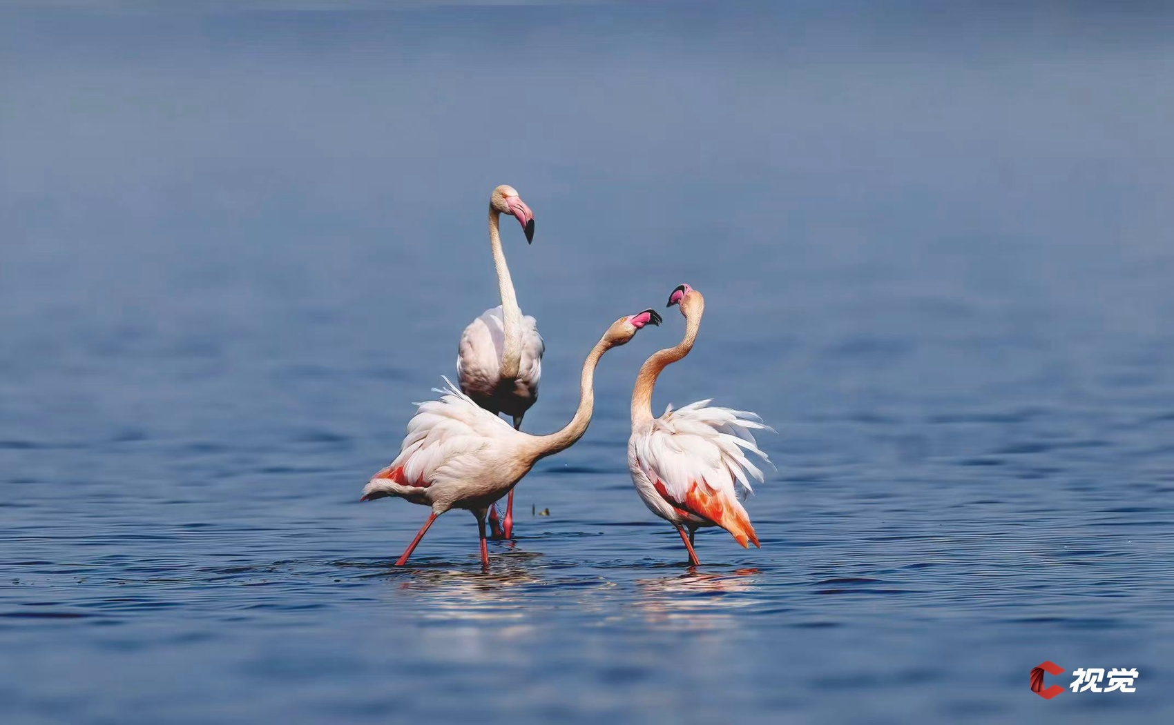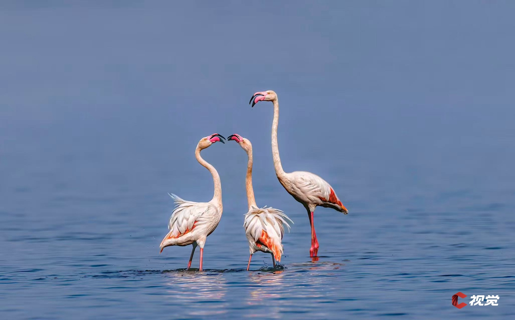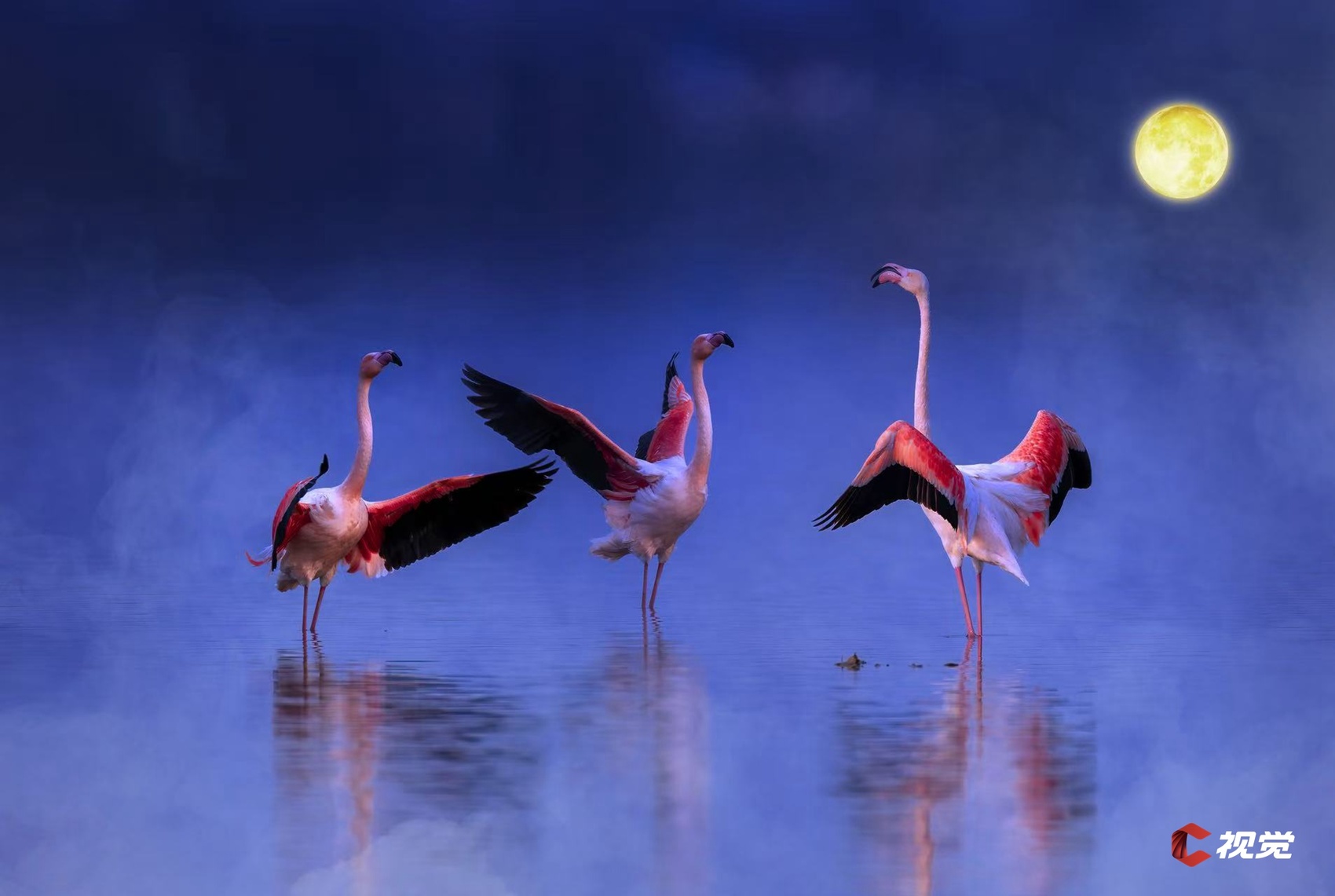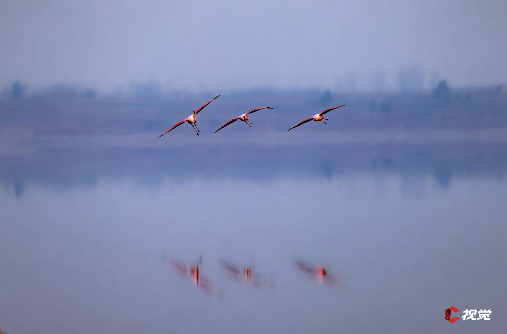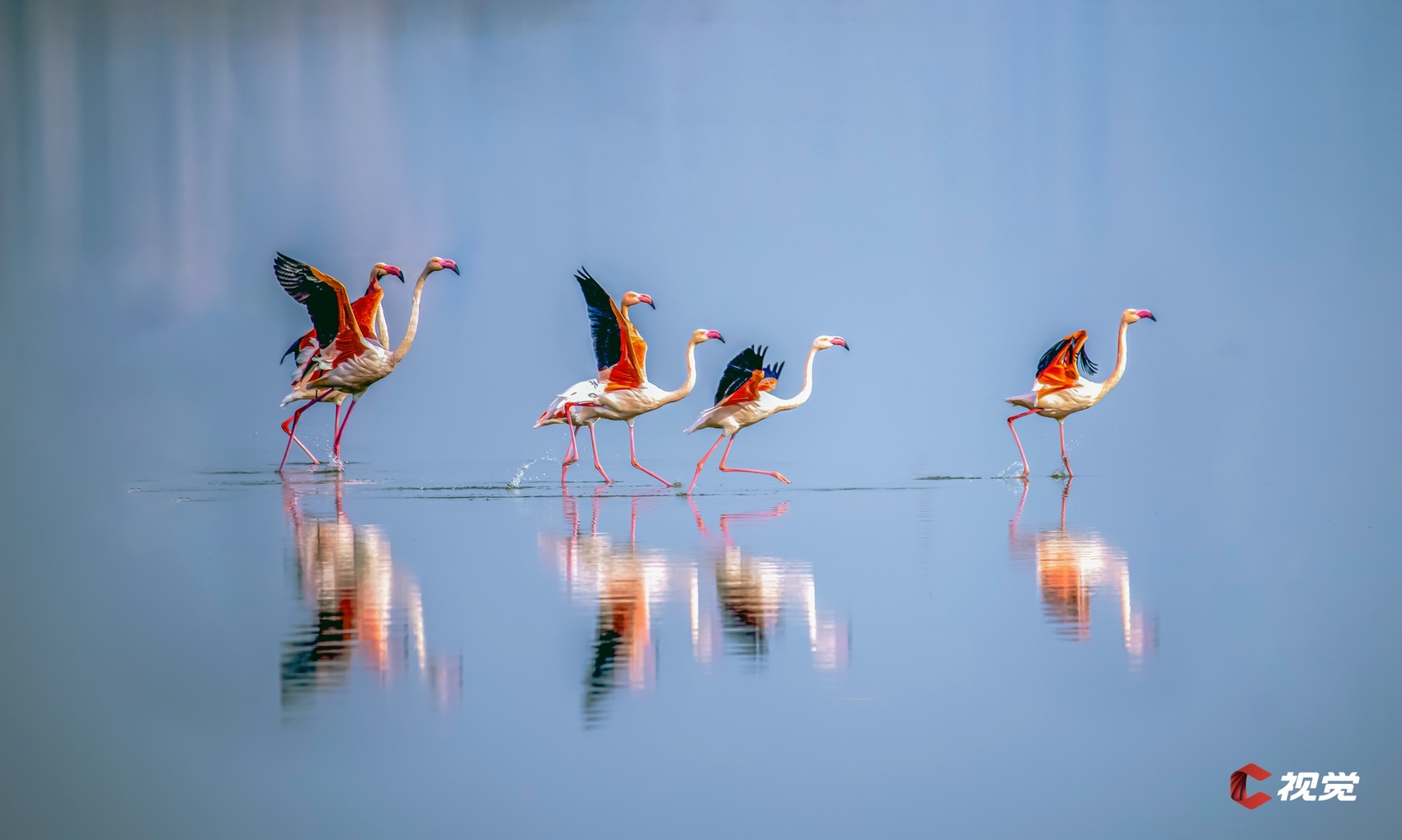 运城盐湖的水面上,六只火烈鸟以错落有致的姿态游弋,粉红与纯白的羽毛在澄澈湖水中形成对称倒影。这是 C 视觉签约摄影师罗建秋先后四次奔赴此地捕捉的画面。他用镜头定格火烈鸟的优雅姿态、互动瞬间,勾勒成一幅关于自然美学的 “粉色美学图谱”。