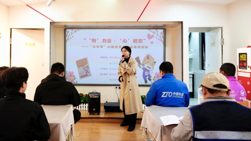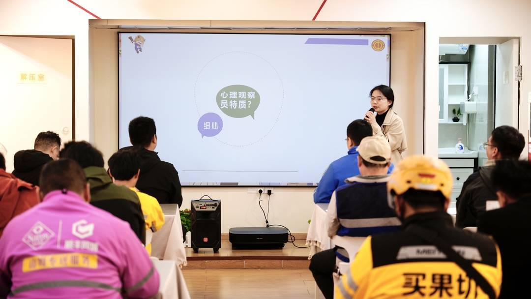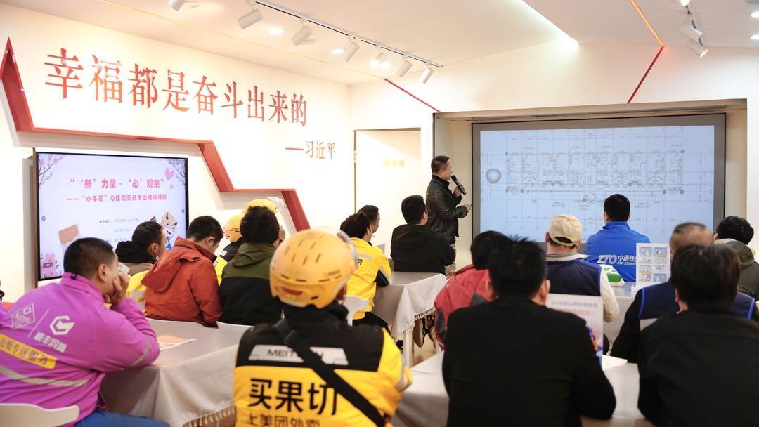 据了解,本次活动邀请辖区20余名快递物流网点站长与外卖小哥代表参与,旨在通过专业心理知识讲解、互动交流与需求调研,提升大家的心理调适与团队关怀能力,为新就业群体注入“心”动力。