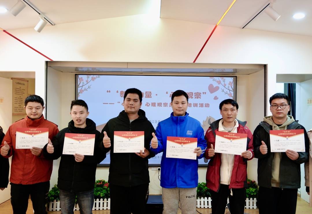 培训最后,通过针对性短答考核,达标站长获颁《“小牛哥”心理观察员特聘证书》,正式受聘为街道新业态心理支持骨干。讲师再次强调心理观察工作的“三原则”:边界性、非评判性、保密性,并介绍了后续的督导支持机制,包括定期案例更新与“小牛哥热线”答疑服务。