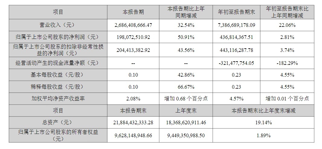 第三季度净利润快速释放,川发龙蟒(002312.SZ)扭转上半年下滑趋势迎来正增长。