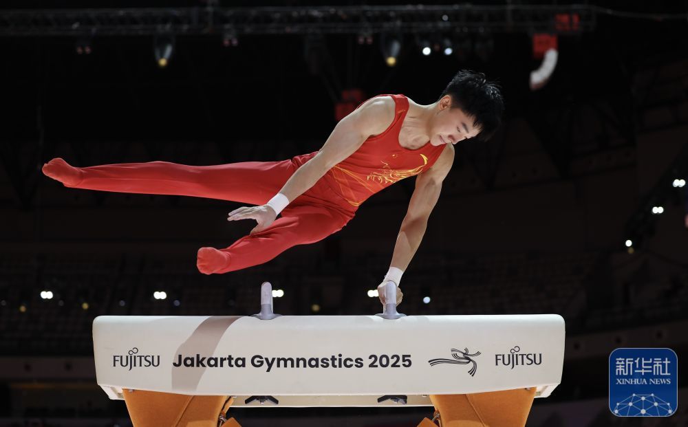 ▷24日,在印度尼西亚雅加达进行的2025年国际体操联合会(FIG)竞技体操世锦赛男子鞍马决赛中,中国选手洪延明夺得冠军。