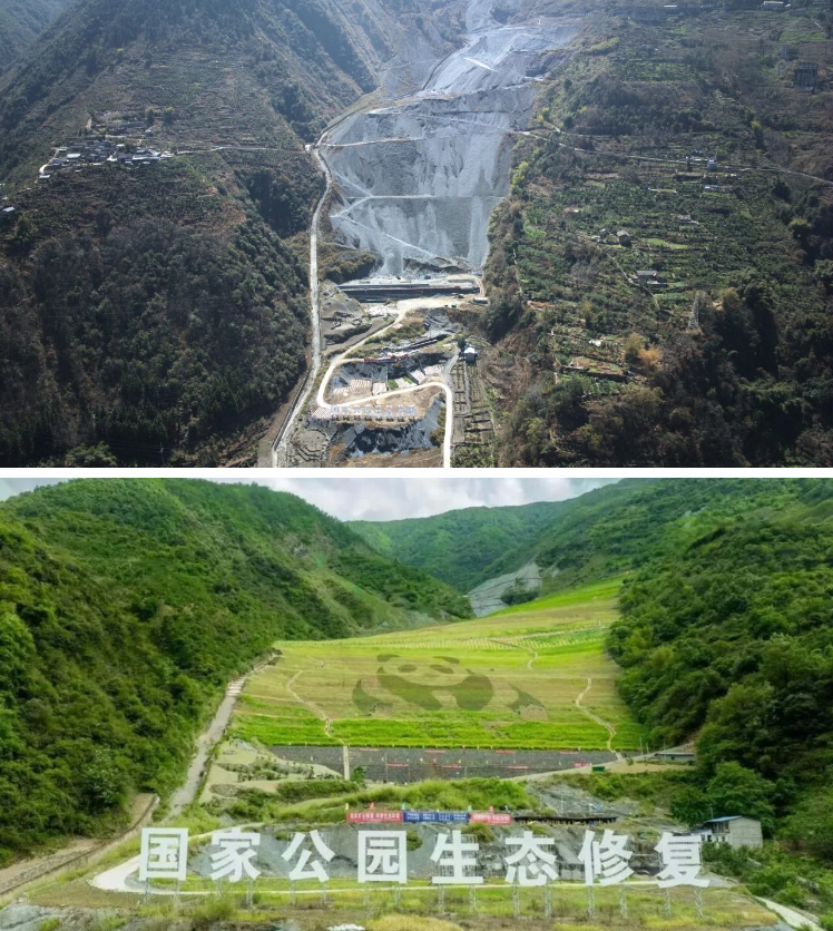 历史遗留废弃矿山大熊猫国家公园(雅安市石棉片区)废弃矿区生态修复案例为国家公园周边地区、城镇聚居区周边、特殊矿种“石棉矿”生态修复提供了“四川方案。50余年开采留下的废弃石棉矿山,大部分处在大熊猫国家公园(四川雅安片区)内,存在地质安全隐患,水土流失加剧。经过矿山生态修复,恢复了退化生态系统,修复后的区域植被覆盖率显著提升,生物多样性逐步恢复。