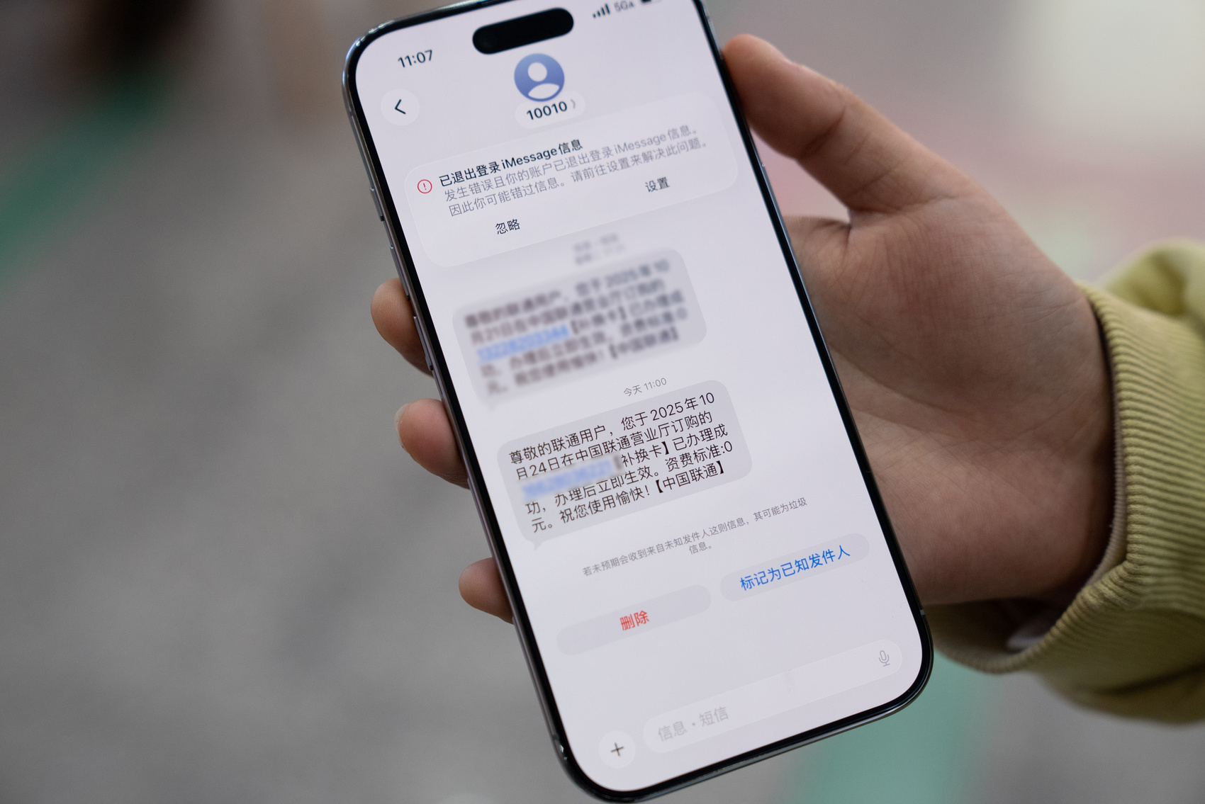 营业厅里,工作人员景欢的胸口前别着一个精致的小别针,上面写着“联通eSIM”。“我是营业厅里专门负责办理这个业务的工作人员。”