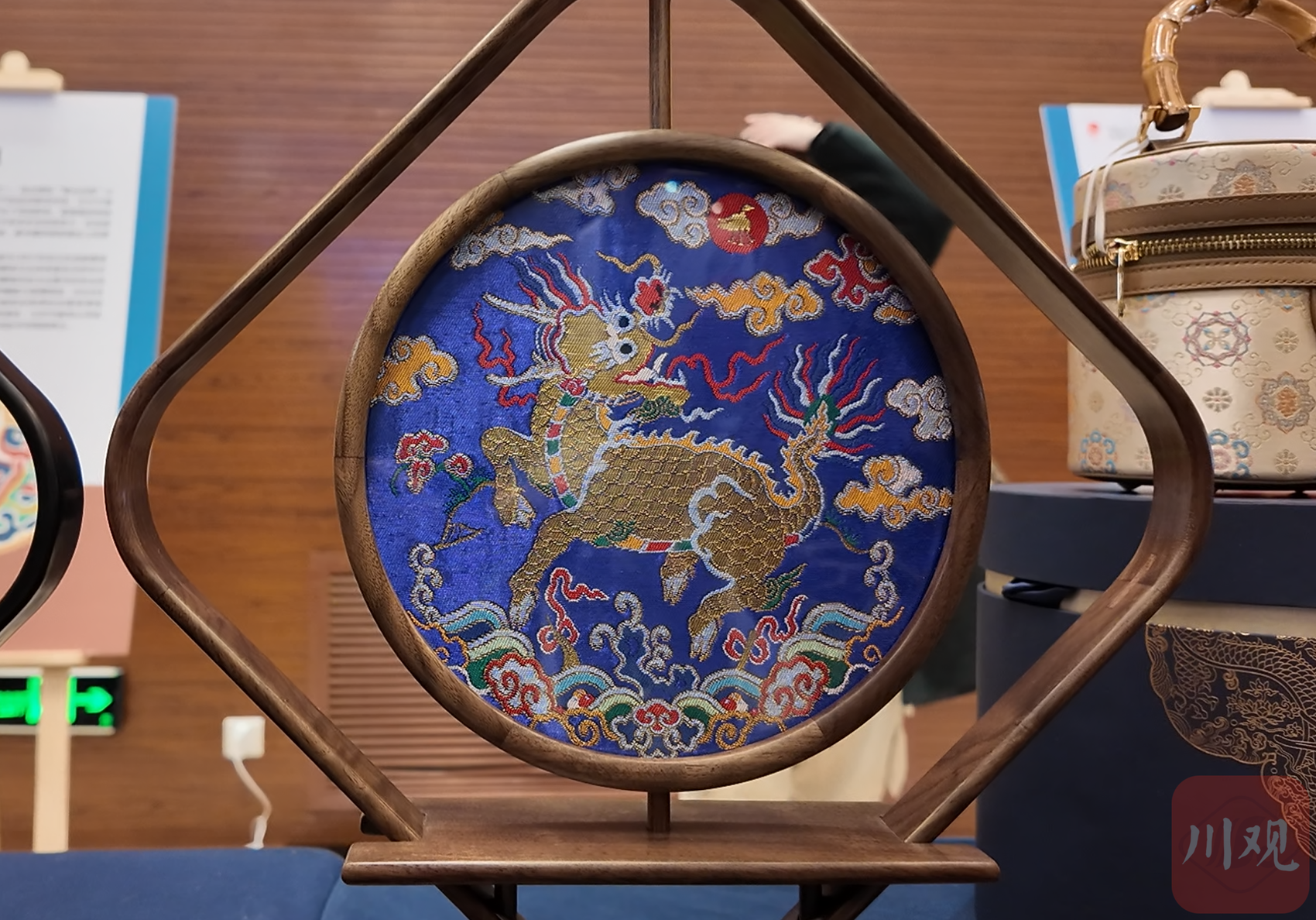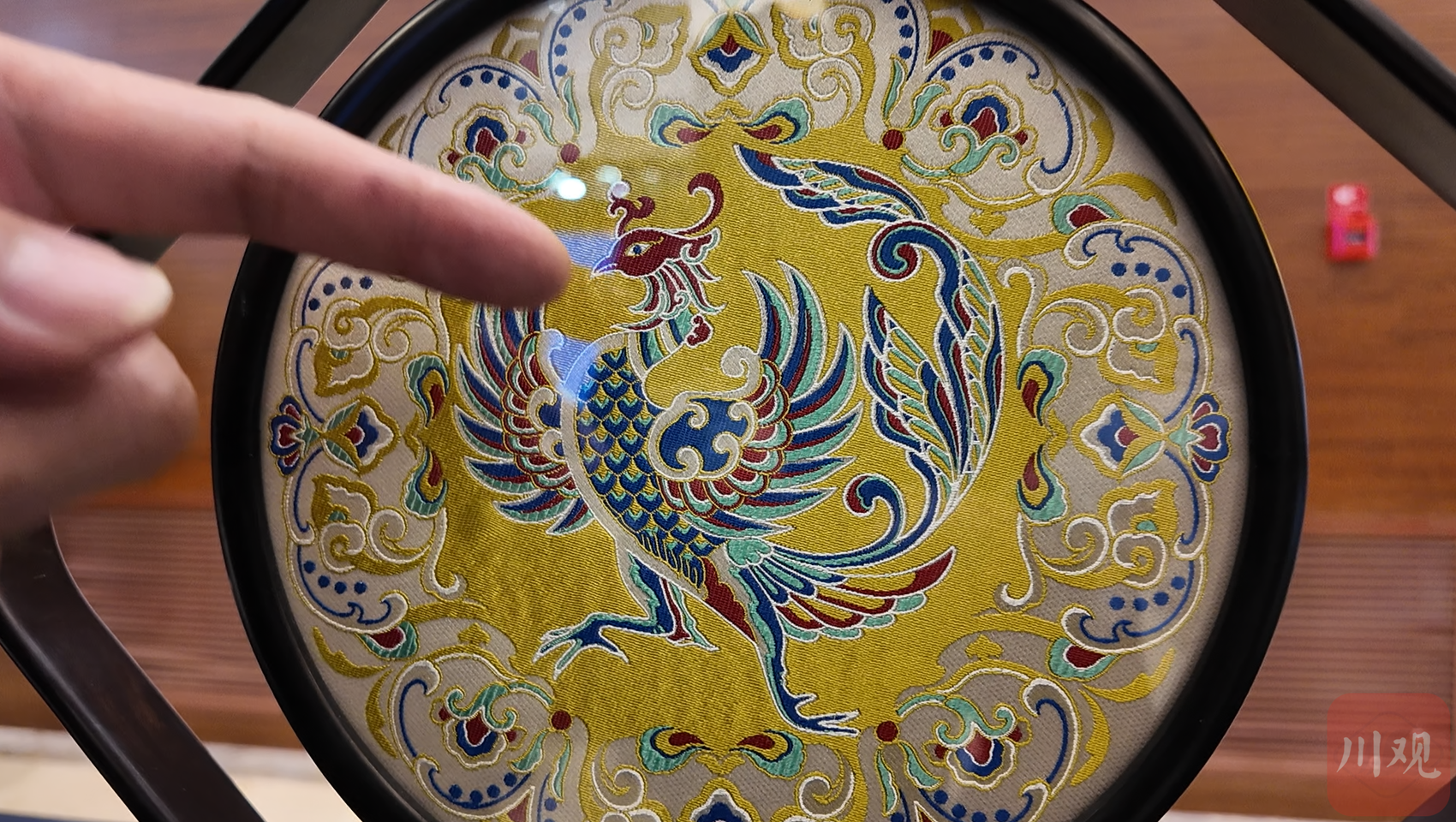 10月25日,在成都,我看到了这样一个云锦、蜀锦相互交融的作品《威凤祥麟》。它出自两位国家级非遗代表性传承人之手。