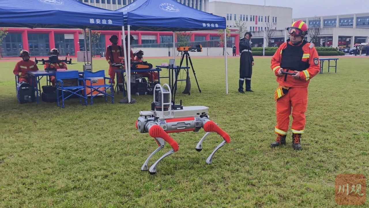 在雅安基地,队员们操控机器狗开展作业。