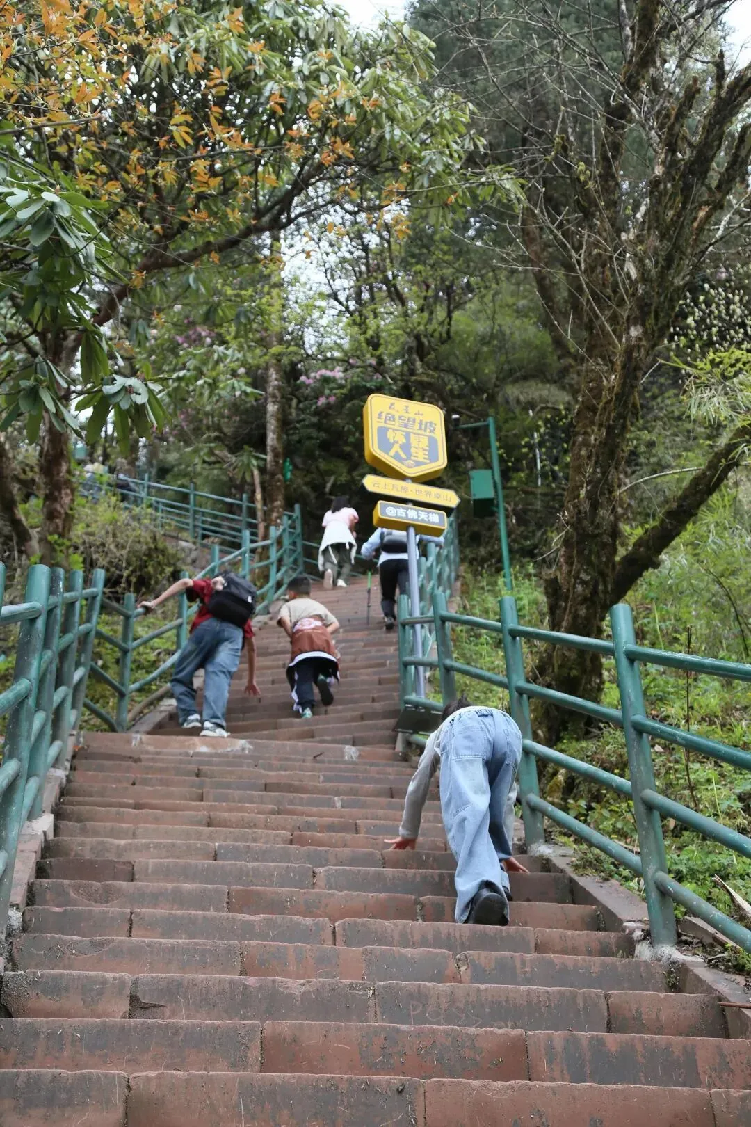 丹棱县的老峨山集齐五福兑换的“终极奖牌”也让游客拼了,有网友分享:“打顺风车赶去,一小时完成从售票厅到舍身崖的往返,就为赶在接孩子放学前拿到‘王炸’奖牌。”