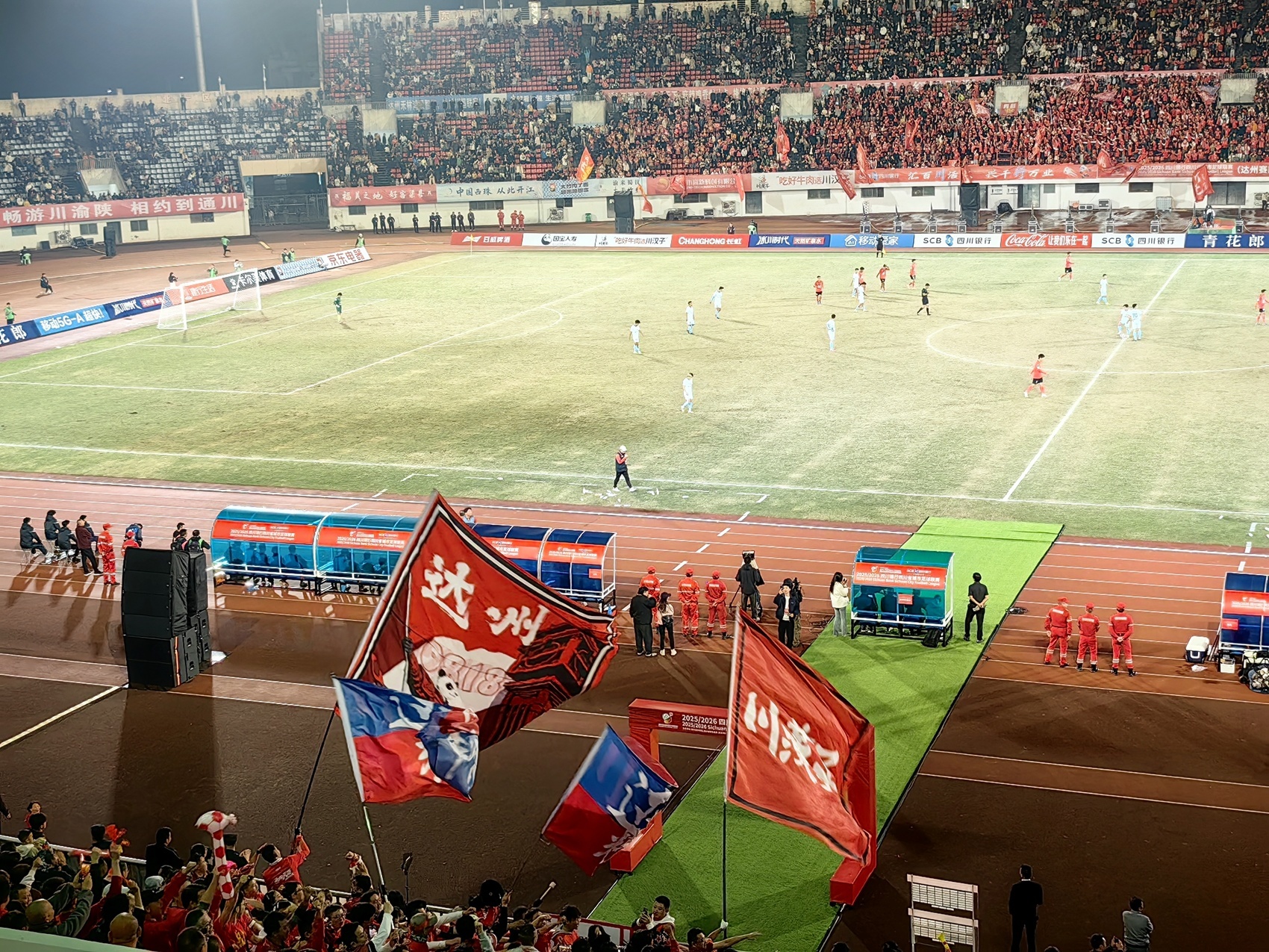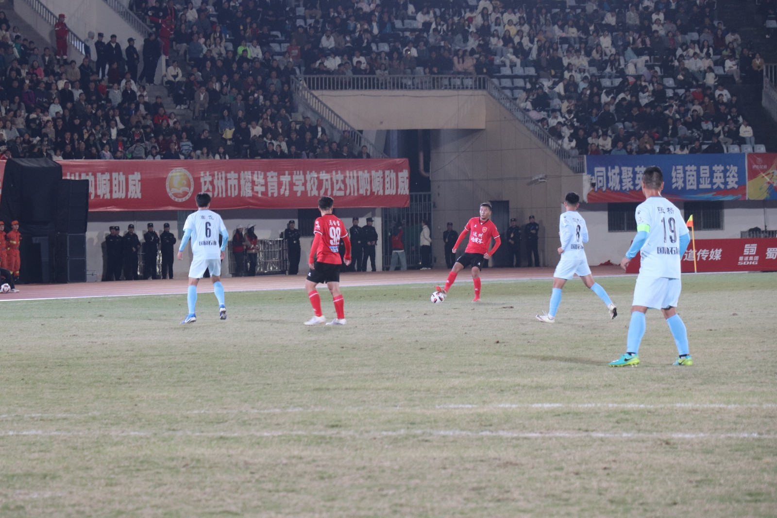 “达州雄起”“广安加油”达州市体育中心加油助威声此起彼伏,当天现场23415名观众为比赛加油助威。