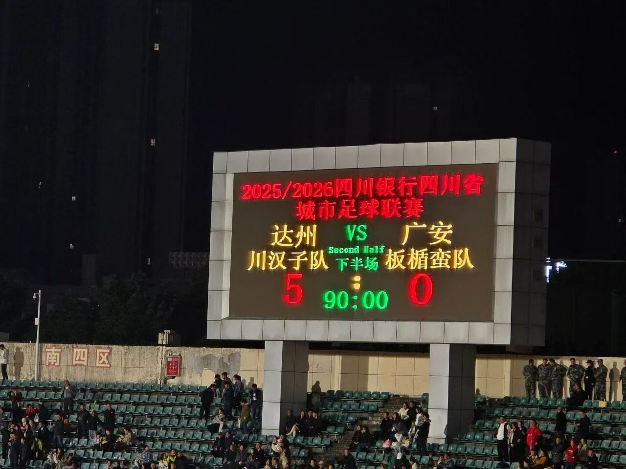 10月26日晚,“川超”联赛第六轮迎来焦点之战,达州川汉子队坐镇主场迎战广安板楯蛮队,以5比0获胜。