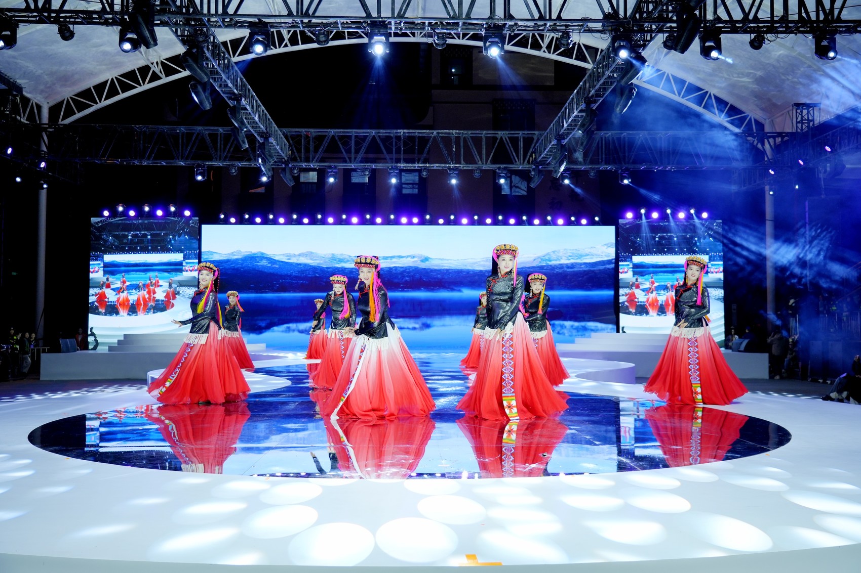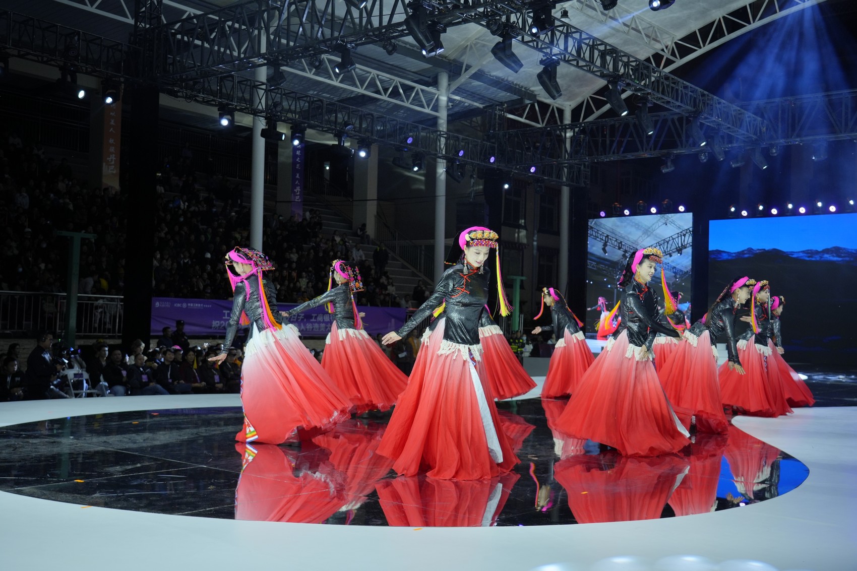 比赛在选手们的集体亮相中拉开帷幕。身着传统嘉绒盛装的佳丽们仪态端庄、自信从容,一亮相便赢得了全场掌声。