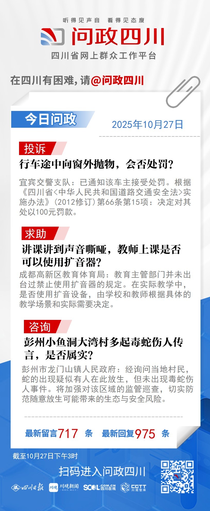在四川有困难,找问政四川。如果您在四川遇到了操心事、烦心事、揪心事,请登录“四川省网上群众工作平台—问政四川”或拨打问政四川热线(028-96001)留言反映、求助或建议。我们将充分发挥平台的互动联系作用及舆论监督功能,第一时间传递民声,推动问题得以及时解决——听得见声音,看得见态度。
