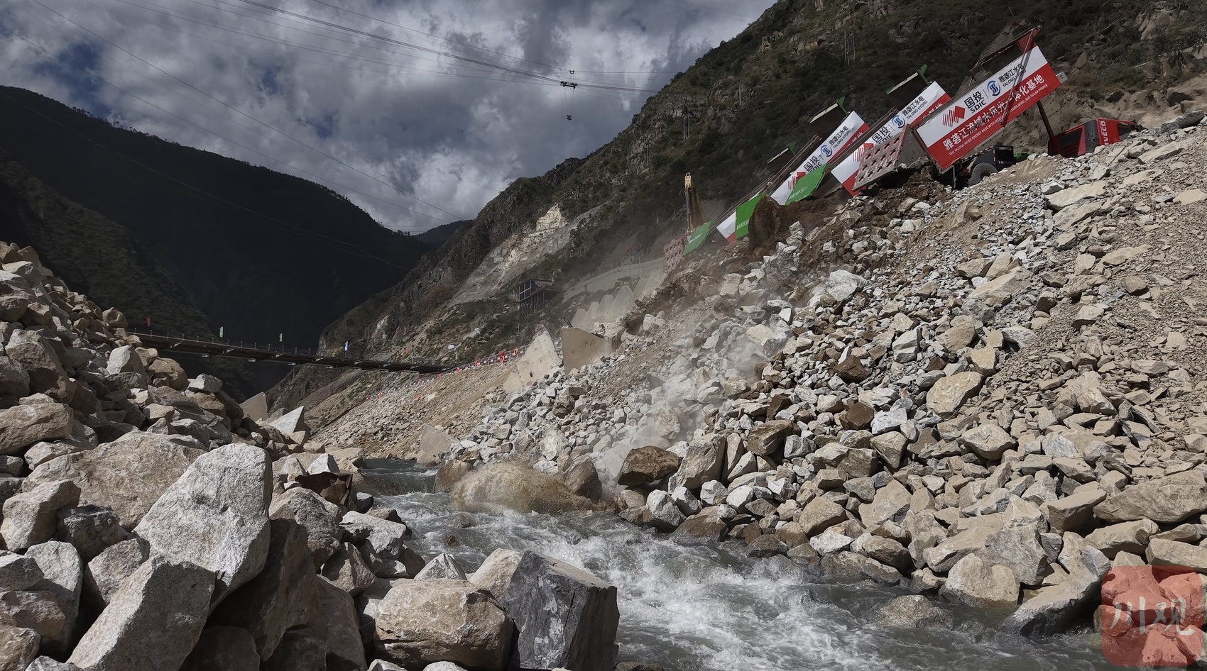 孟底沟水电站大江截流现场。