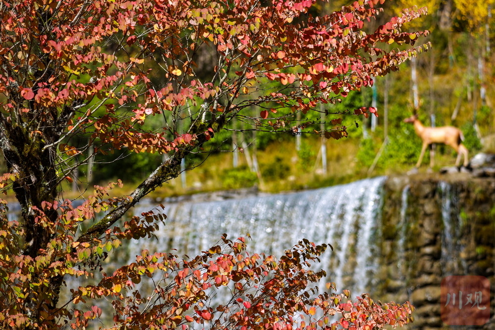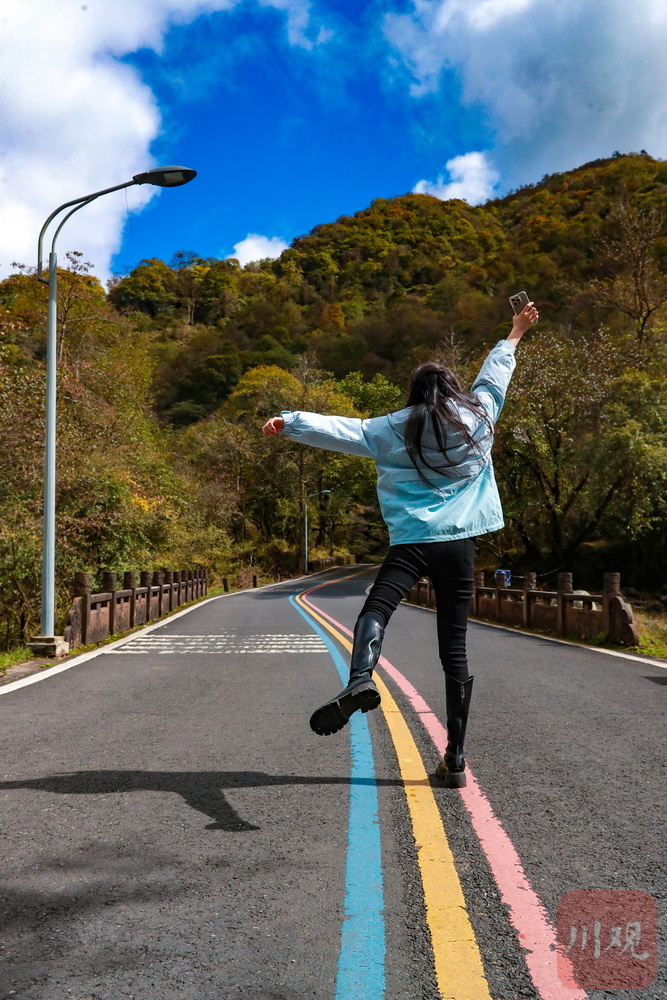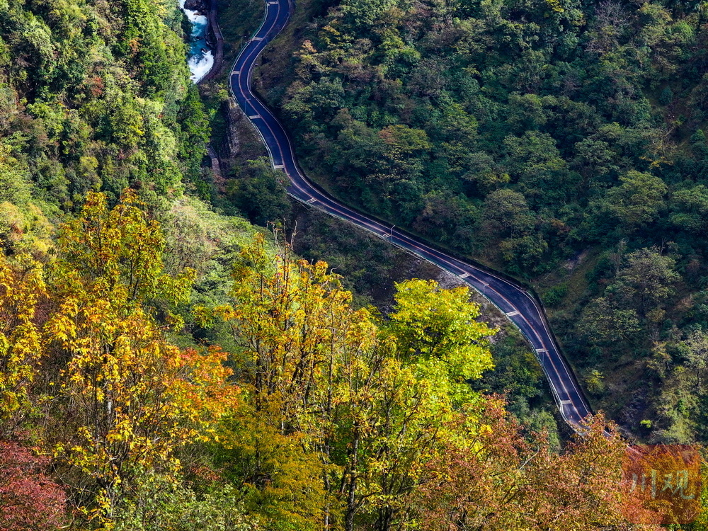 10月27日,走进雅安市天全县二郎山喇叭河景区,山间红叶与路边的猴群相映成趣,秋色渐浓,即将迎来一年中色彩最为斑斓美丽的季节。