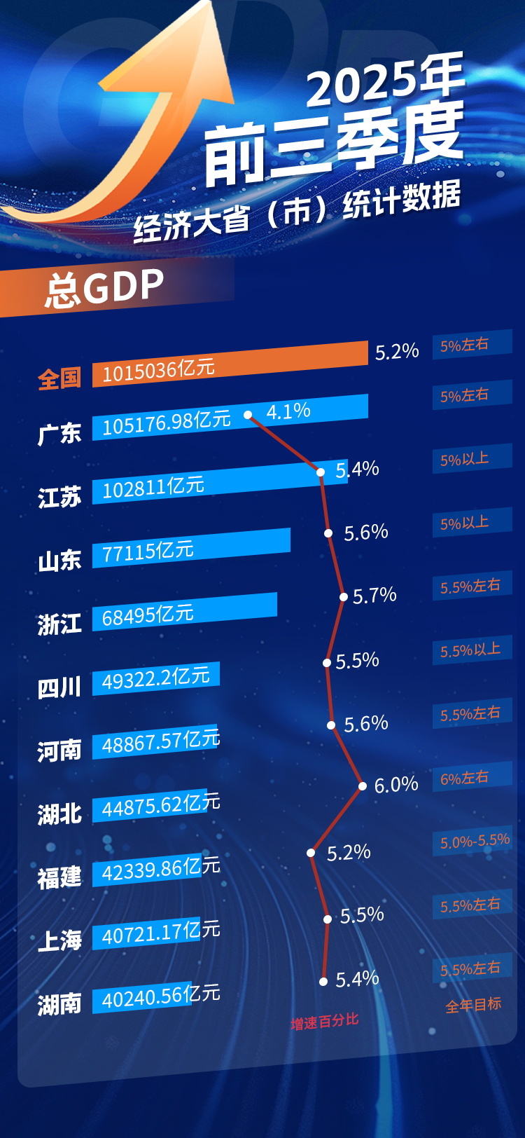 今年是“十四五”规划收官之年,能否如期完成2025年目标任务,关乎“十四五”规划蓝图的“兑现”成色。今年前三季度十强省市呈现怎样的发展特征?与各自确立的全年目标相比还有哪些差距?川观智库省情研究所对此进行了观察和研究。