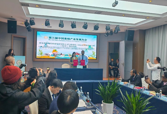 10月25日,位于武陵山腹地的湖南省新晃侗族自治县,莱索托工商总会中国代表处副代表罗普丁与新晃黄精现代农业发展有限公司签订合作协议,将引进黄精产品及加工技术,在该国加强食药同源产品开发。这是“新晃黄精对外贸易交流会”上发生的一幕。