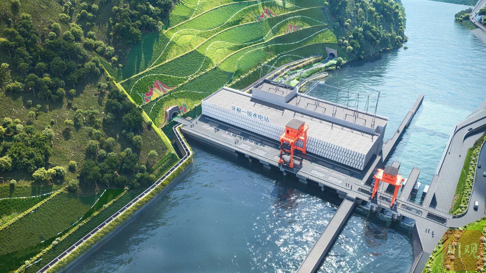 牙根一级水电站位于甘孜州雅江县,虽然装机规模不大,只有30万千瓦,但不能小看它,因为牙根一级水电站的关键作用是:反向调节。它是四川省最大水库电站——两河口水电站的反调节电站,两河口水电站因为日调峰运行产生的不稳定下泄流量,将由牙根一级水电站进行“削峰、填谷、再调节”,有效平抑流量波动,保障下游河道流量在较小范围内平稳变化,从而充分释放上游两河口水库多年调节能力,提高流域整体水能利用效率。同时,牙根一级水电站还是两河口混合式抽水蓄能电站的下水库,能够与两河口水电站、两河口混合式抽水蓄能电站以及周边大规模风电、光伏项目协同运行,构建“水风光蓄”多能互补系统。