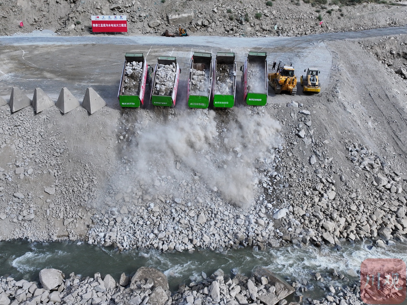 10月28日,雅砻江中游河段,历时近30个小时,总装机270万千瓦的两座大型水电站——雅砻江孟底沟水电站、牙根一级水电站同步实现大江截流,项目进入主体工程施工新阶段。这是雅砻江流域首次实现两座水电站同步大江截流,标志着国家首个水风光一体化基地建设取得新突破。