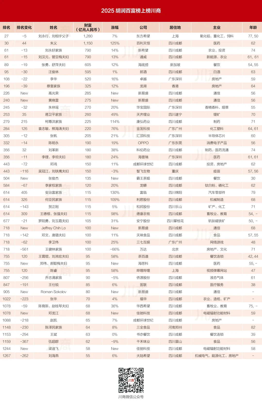 此前报道:2024胡润百富榜发布!这些川商上榜→