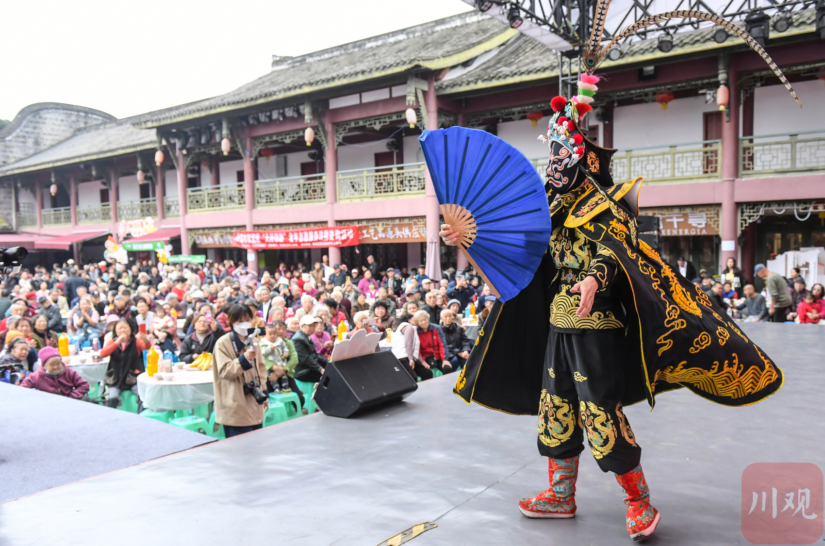 在成都市双流区黄龙溪镇黄龙社区黄龙大剧院,千名老人品尝145桌“坝坝宴”喜迎九九重阳节。