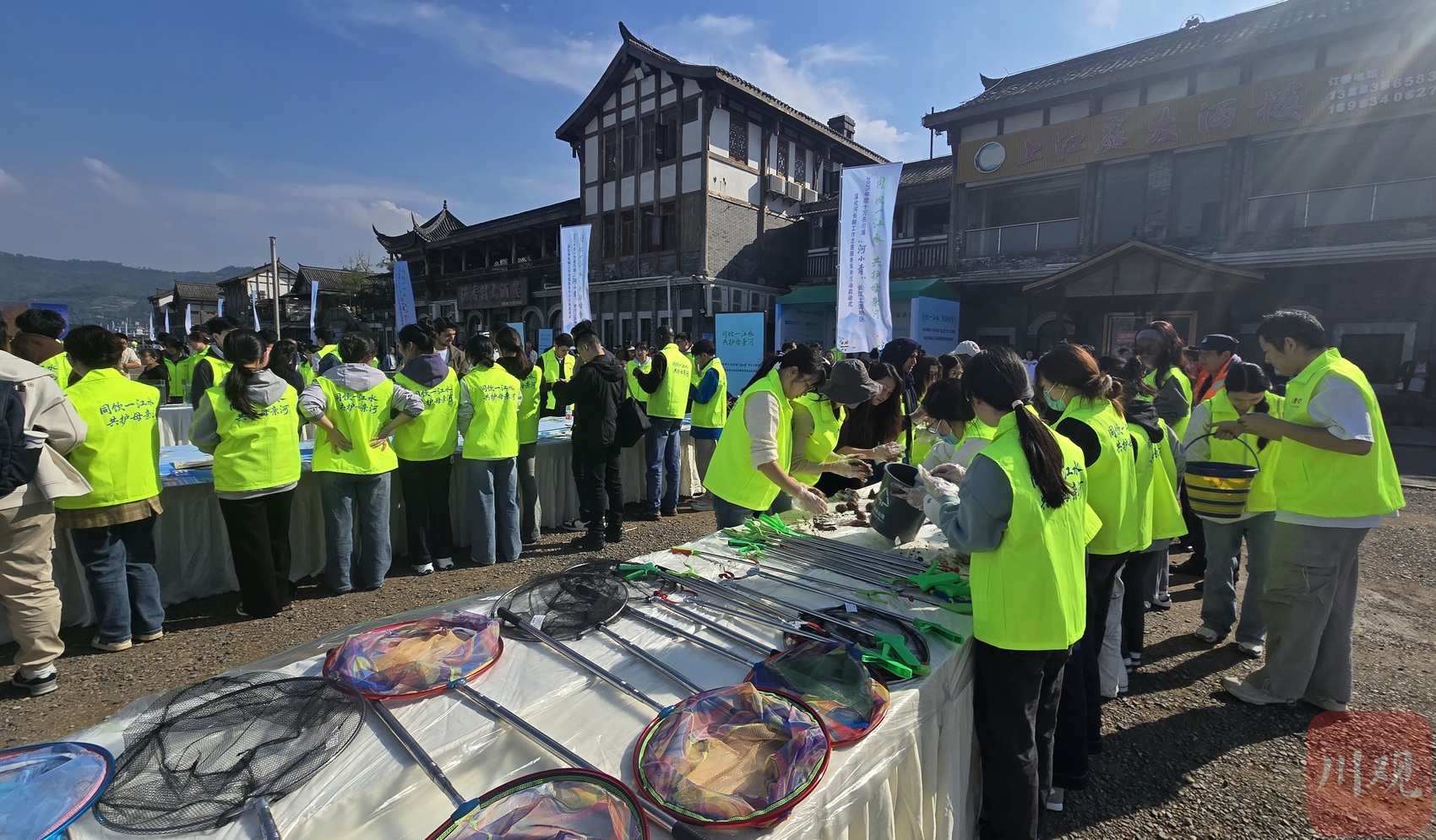 除巴南区主会场外,本次活动还设置了多个分会场,覆盖川渝两地13个长江干流流经县(市、区),共计5000余名“河小青”青年志愿者参加活动。启动式结束后,主会场与分会场同步开展实践活动。与会嘉宾和“河小青”青年志愿者代表乘船参与水域清漂、增殖放流,投放鱼苗助力水生态修复;志愿者分组开展水质检测、巡河护水,实时记录河道环境数据;“河流拼图”知识竞赛现场,志愿者通过环保知识竞答获取拼图块,共同完成长江流域图巨幅拼图,在互动中深化生态保护认知。