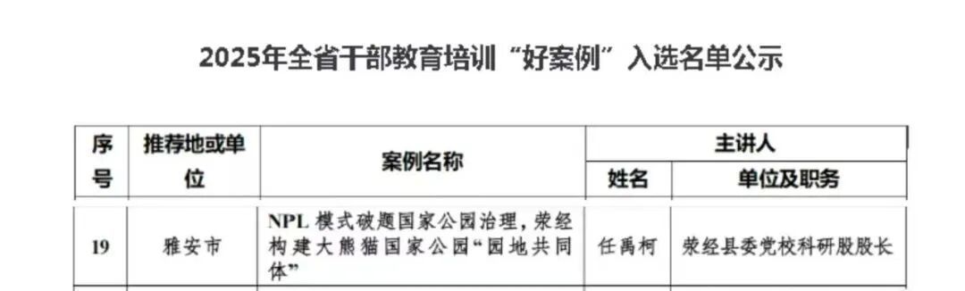 荥经所创新的“三方共建、圈层协调”路径,实现生态、经济、文化三维共赢。案例中“栖息地修复标准”“自然教育”“IP品牌”等做法模式可复制性强,能为省市干部破解“生态保护与县域发展平衡”难题提供实践借鉴,具有很大学习推广价值。