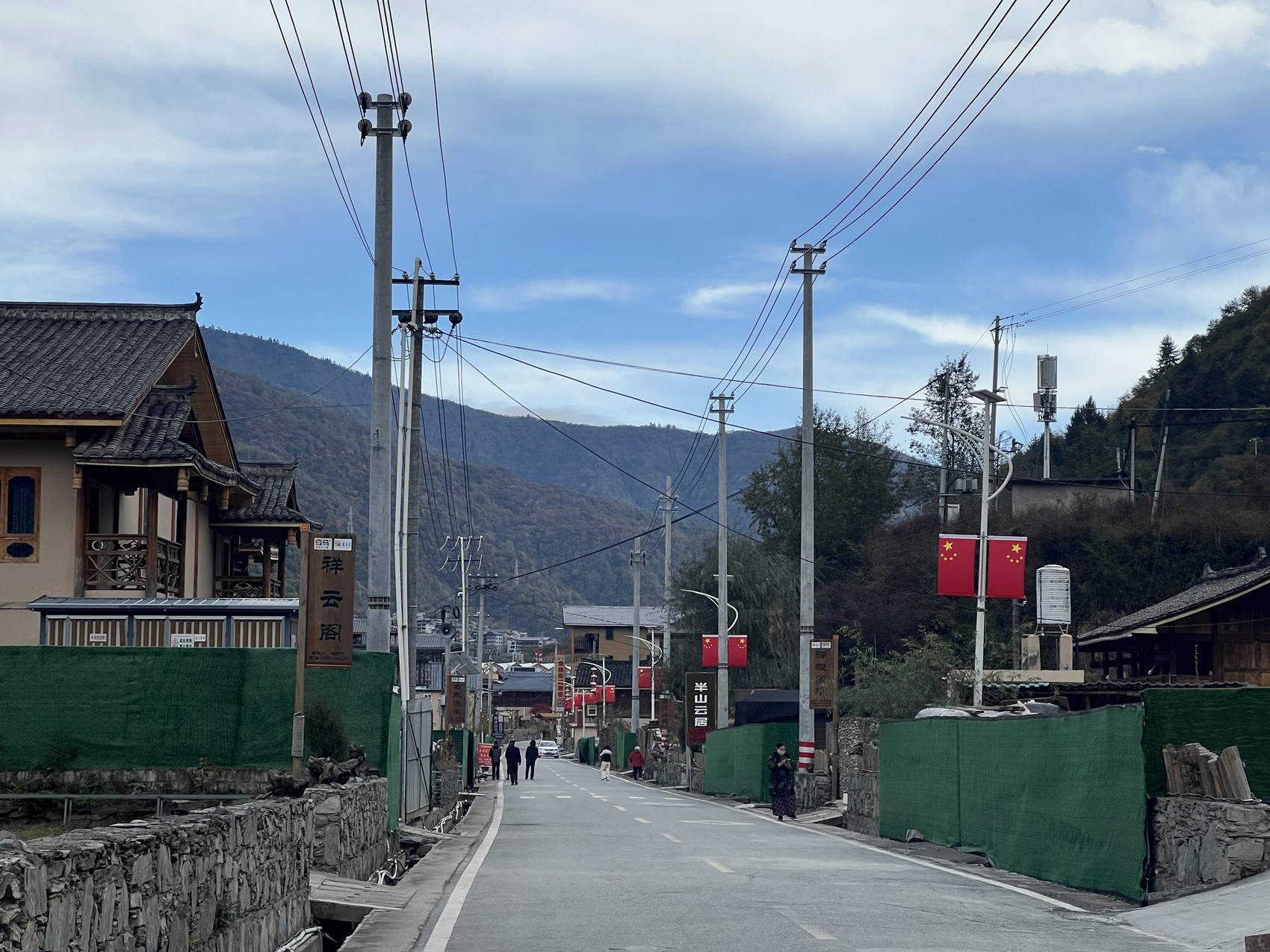 祥述加寨内只有一条主干路,700多米长,民族风情浓郁的民宿沿路而建。道路两侧还有9户村民正在加紧施工,建设新的民宿。