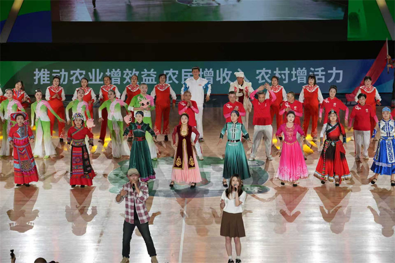 比赛间隙,还举办了“乡韵欢腾·全国和美乡村文艺展演”。空竹表演《秦风竹韵》、民俗演出《桐子花开春风俏》、陕西非遗表演《安塞腰鼓》等一系列植根乡土、传递乡情的精彩节目接连上演。舞姿灵动飘逸,民俗韵味悠长,非遗《安塞腰鼓》更擂响了黄土地上的豪迈气魄。
