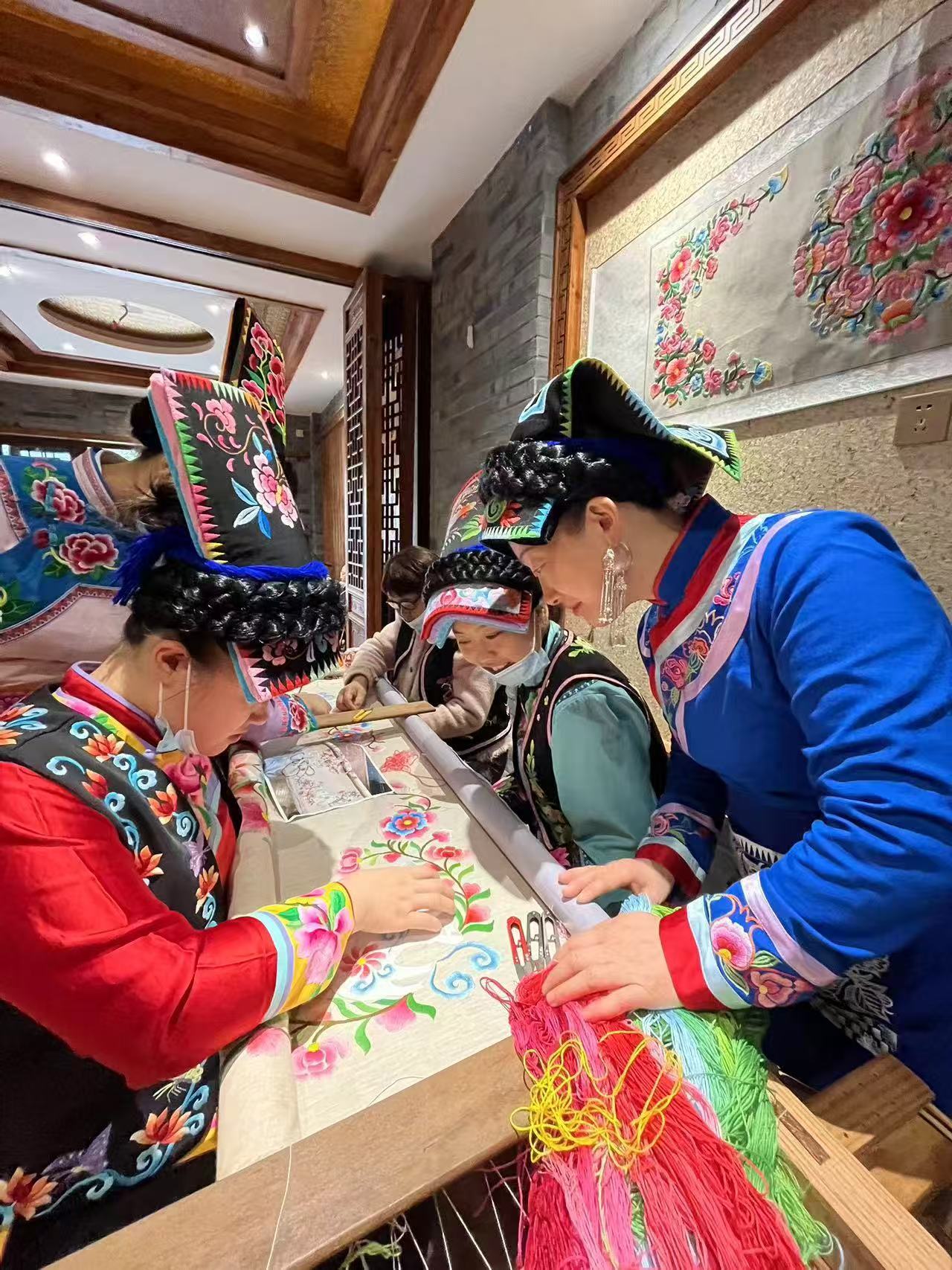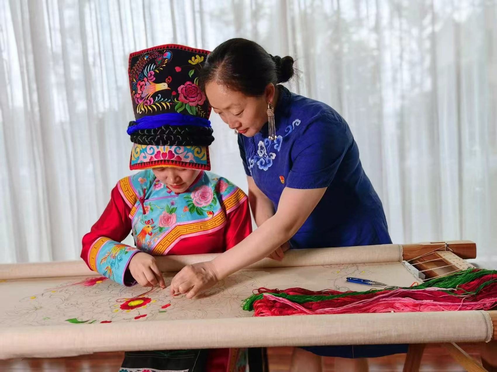 在陈云珍的工位旁,绣娘宋琴正俯身于绣架前,专注地绣制一幅双面绣屏风。宋琴曾因地震失去双腿,5年前来到羌绣工坊后,在陈云珍手把手的教导下,如今已成长为工坊里独当一面的业务能手。“这里早就是我的第二个家了。”宋琴笑着说,“靠着这门手艺,大多数时候每月能稳定增收2000多元。”