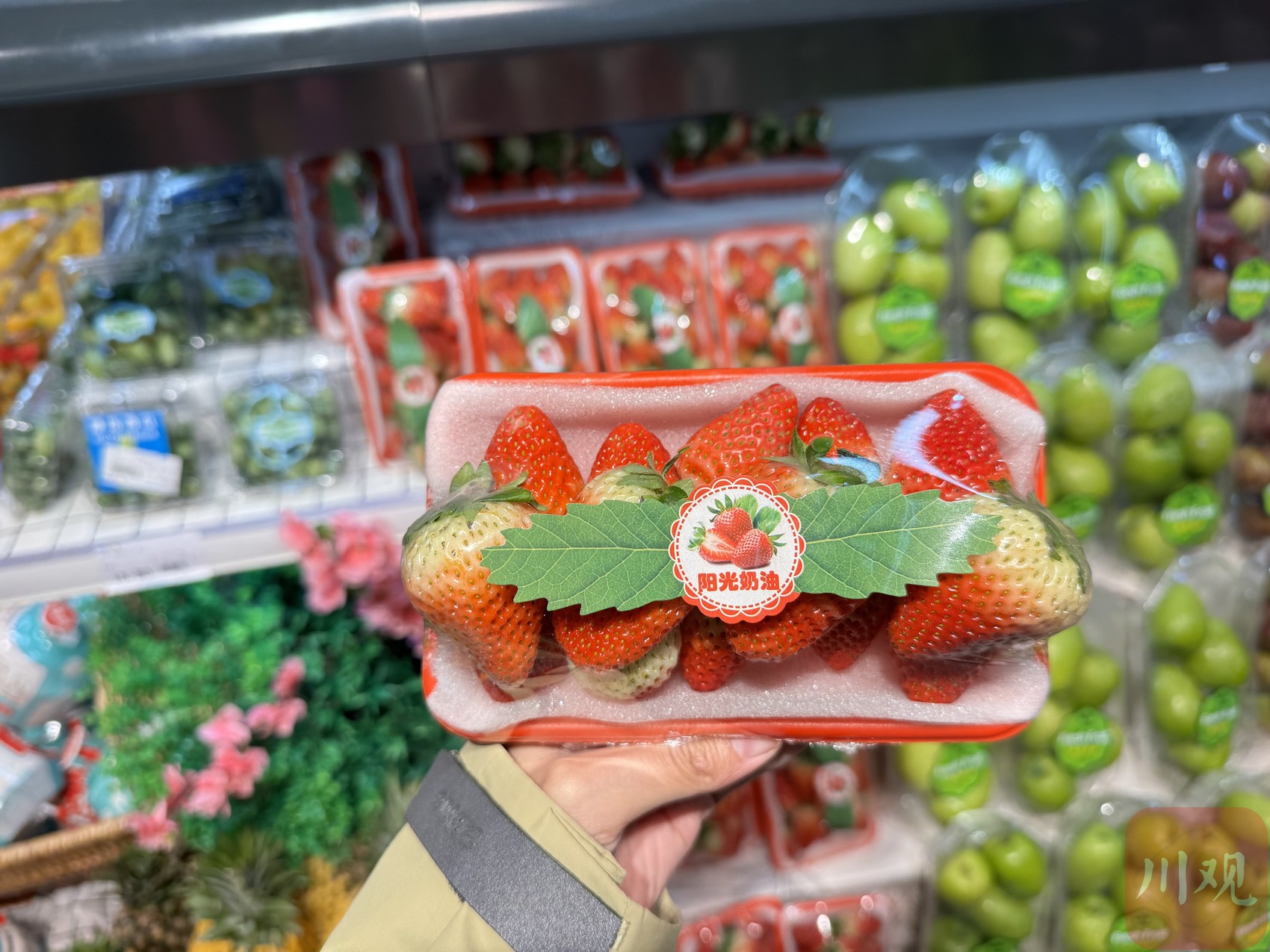 这批“抢鲜”的草莓品质怎么样?带着好奇,记者在成都市金牛区的商超购入了一盒。