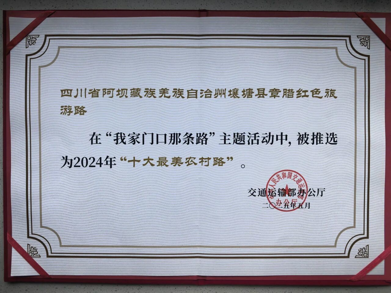 据了解,章腊红色旅游路是四川省阿坝州壤塘县的一条农村公路,始建于2012年,全长5.33公里,在崇山峻岭间蜿蜒而上,穿梭于雪山峡谷、藏寨村落之间,这条串联起红色文脉与乡村振兴活力的道路,不仅成为壤塘的闪亮名片,更印证了壤塘县“四好农村路”建设的扎实成效。