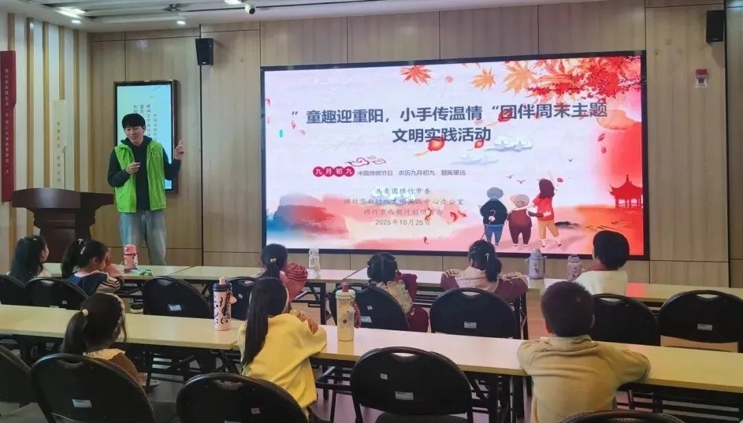 10月25日,绵竹市新时代文明实践中心办公室联合共青团绵竹市委,在市新时代文明实践中心组织开展了“我们的节日·重阳——童心迎重阳,小手传温情”团伴周末主题文明实践活动。