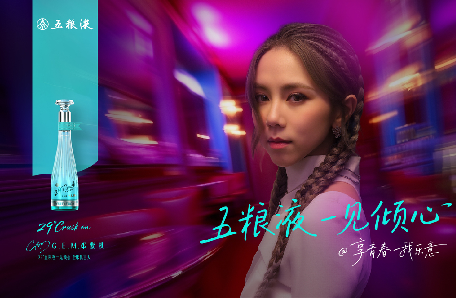 让年轻人一见倾心的,还有29度五粮液一见倾心的品牌主张——“享青春,我乐意”。29度五粮液一见倾心还邀请华语乐坛实力派歌手邓紫棋担任产品全球代言人。邓紫棋在“95后”“00后”中积累了大量歌迷,他们和29度五粮液一见倾心的目标用户非常吻合。官宣代言后,又相继冠名邓紫棋上海站、成都站演唱会,与消费者近距离互动沟通,打造共同记忆。