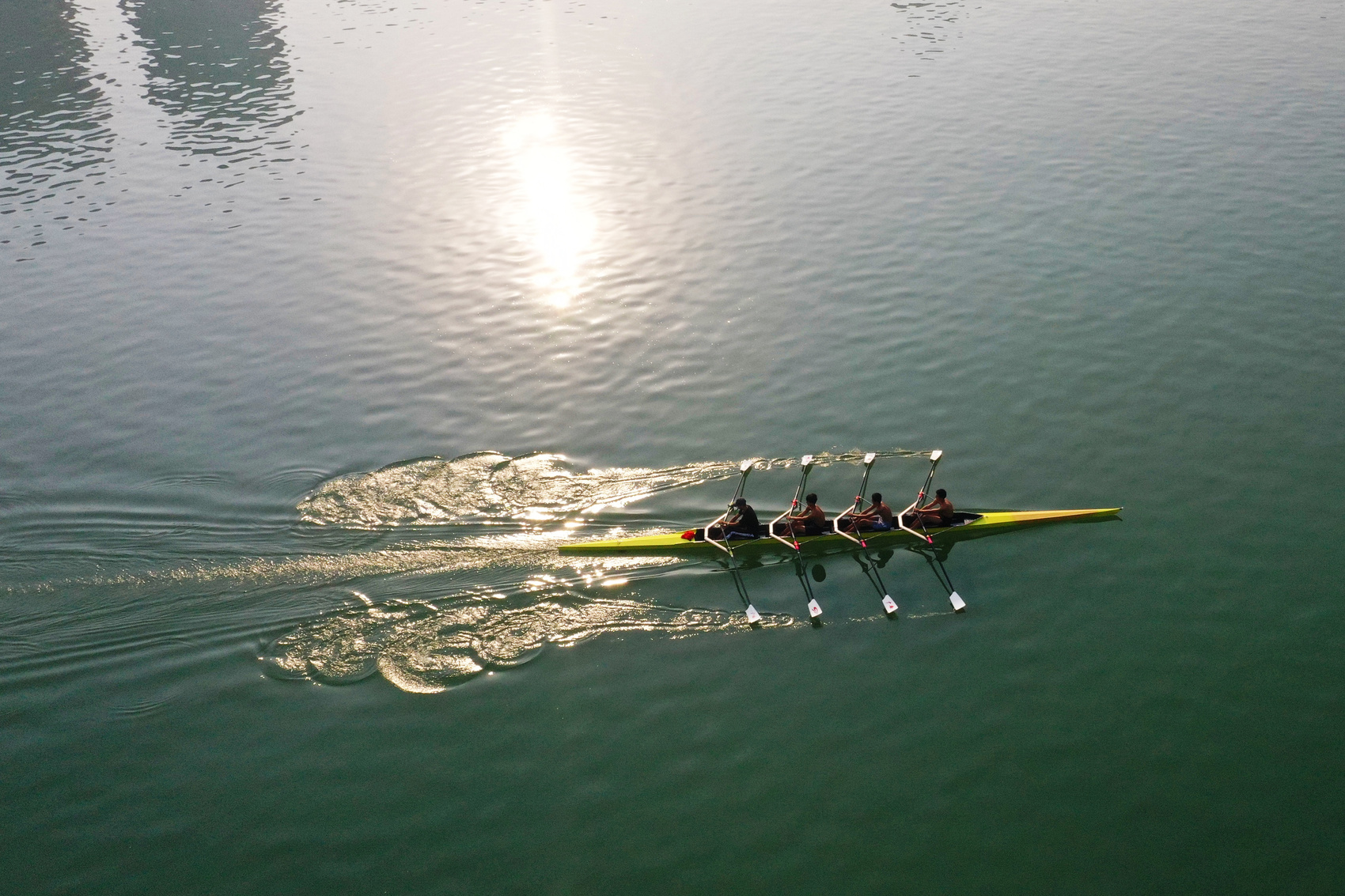 武胜县赛艇皮划艇队员在嘉陵江(武胜段)上开展训练。 夏俊林 摄
