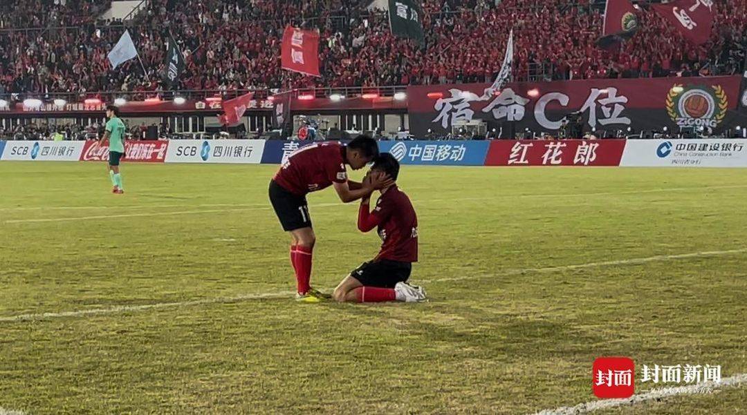 或许因为开局不久便连丢两球,自贡队后卫6号杨航在随后的比赛防守中特别勇猛,多次破解对方凶猛的进攻,为队员们后撤防守争取了机会。当主裁判的终场哨声响起,拼到最后的杨航在禁区前跪地不起,热泪盈眶,最终在队友的安慰下半晌才平复激动的情绪。