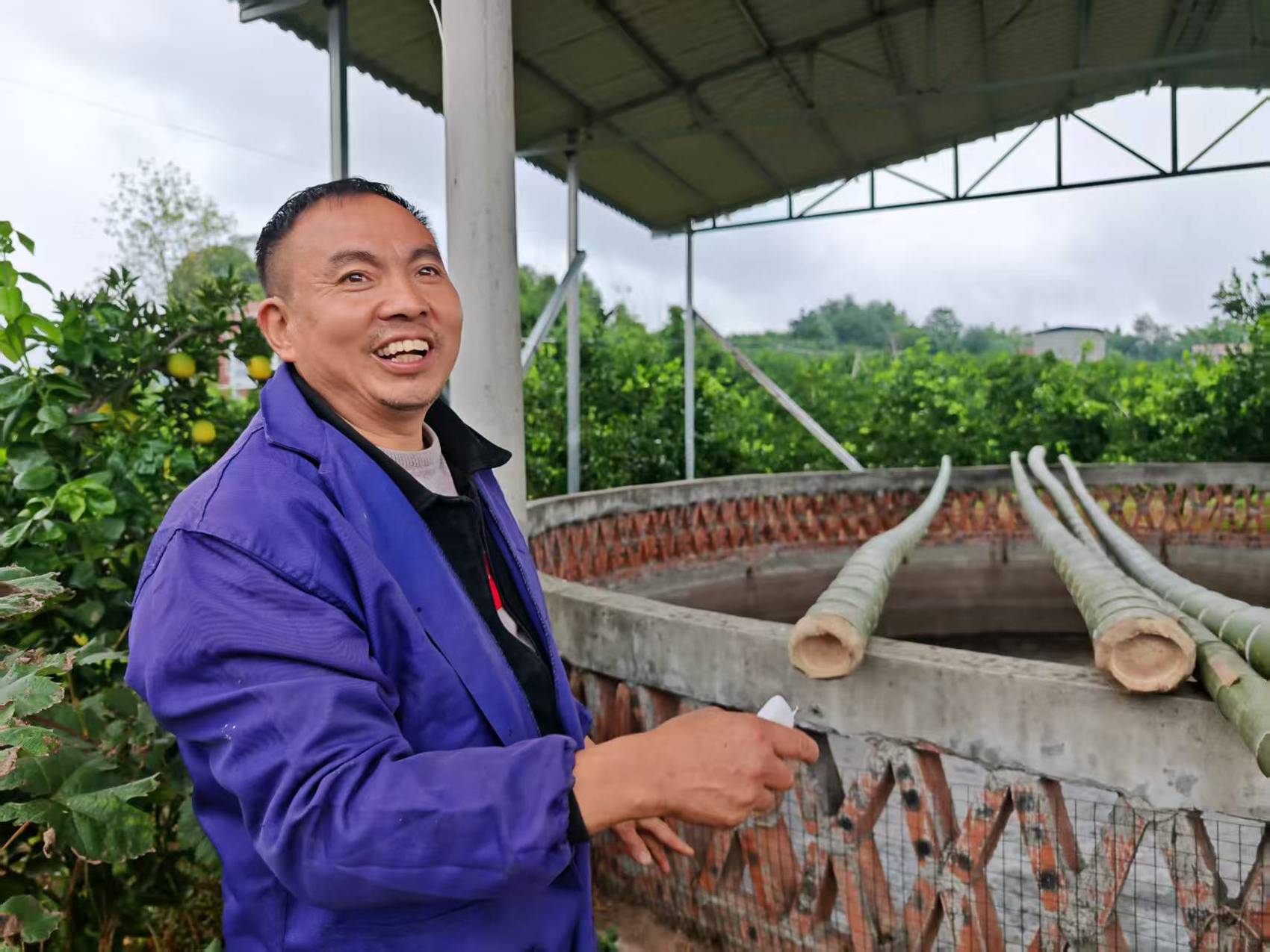 钟军介绍自家的粪污处理系统 康琴/摄
