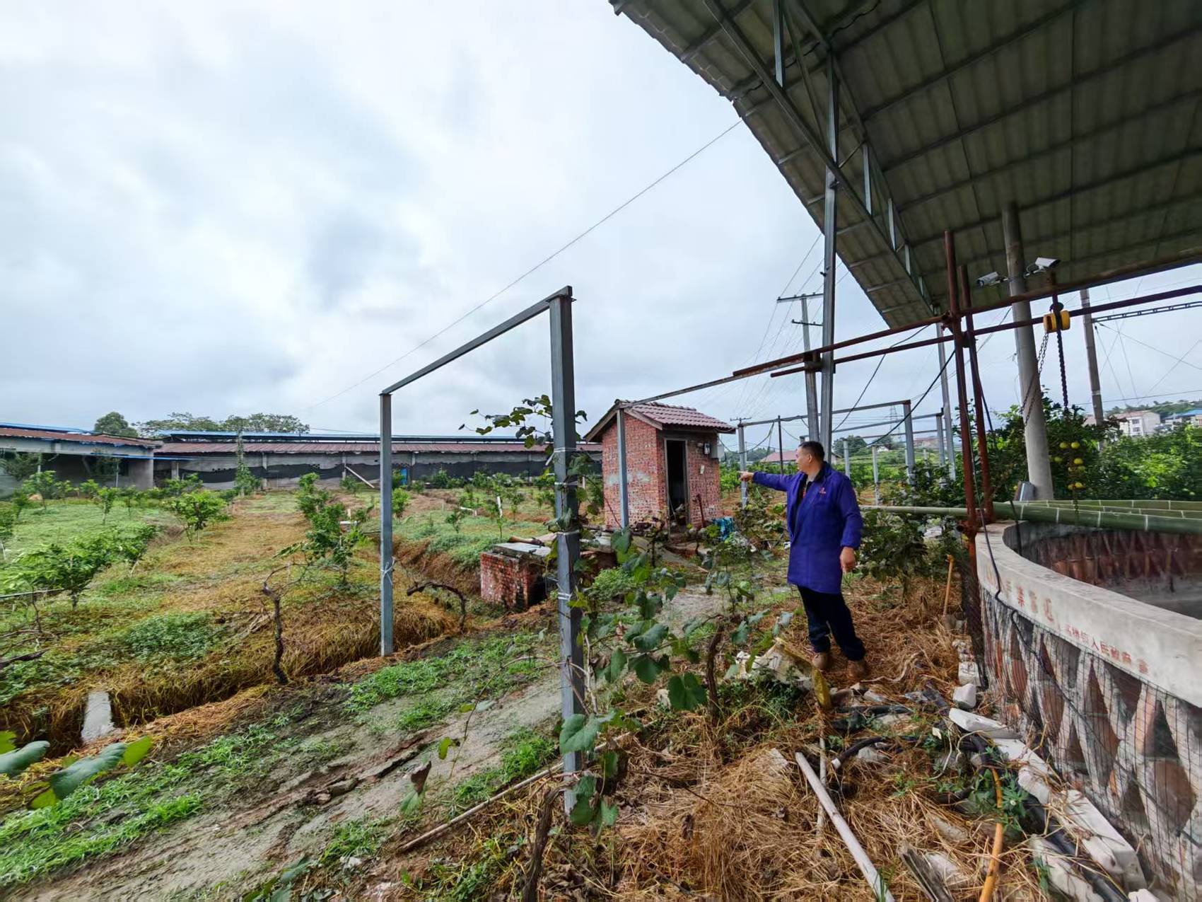近年以来,当地政府鼓励生态种养、推进粪污治理,他在县农业农村局的指导下,投入30余万初步建立了这套种养循环系统,政府补贴了10来万,特别在农业面源试点开展后再次完善粪污管网、农药管道、储粪池挡雨棚等设施,最终形成这套系统。