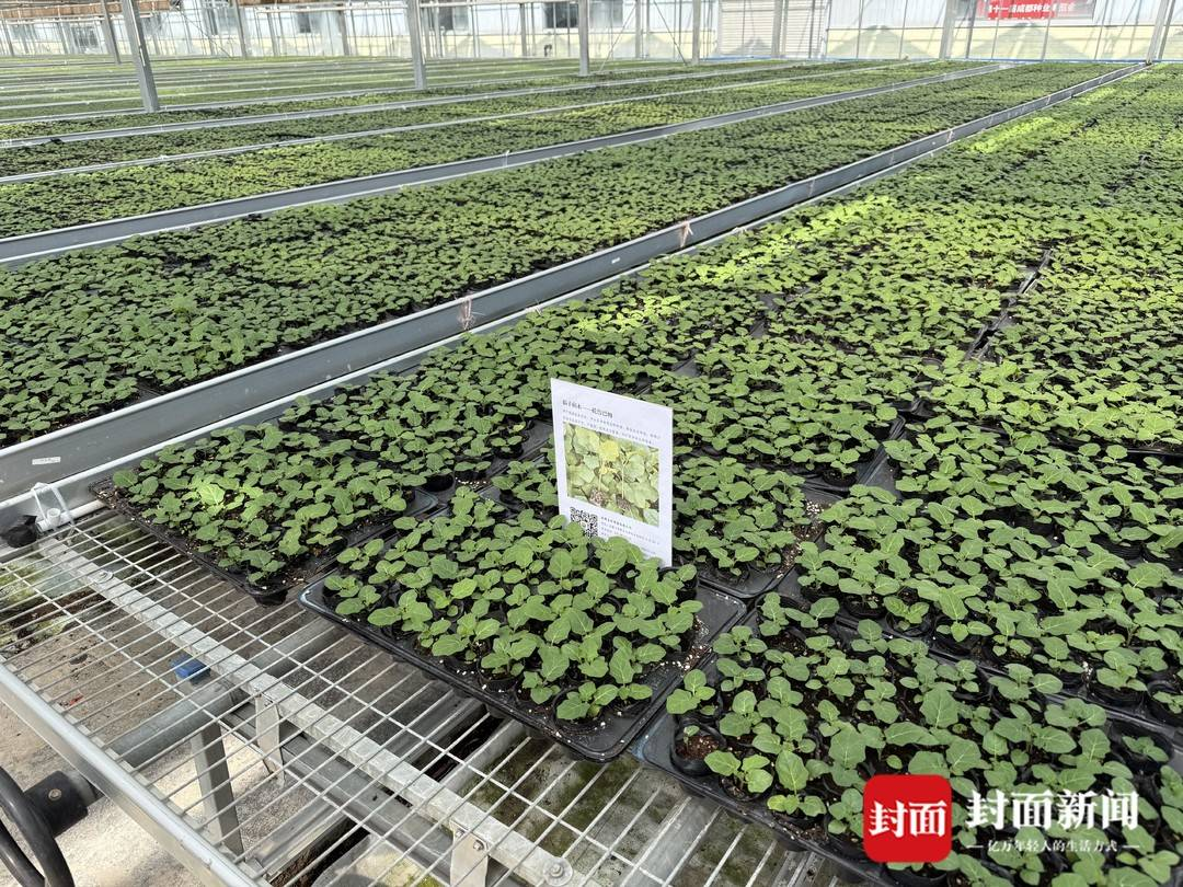 随后,记者来到彭州天府蔬香农业产业园内的国家级区域性良种繁育基地,温室内上千个育苗盘整齐地摆放着。“这里面都是茄子的苗。”基地主管冯张指着介绍,这批苗有10万株,是今年9月初培育的,预计12月底开始嫁接种植,为春节蔬菜供应做准备。