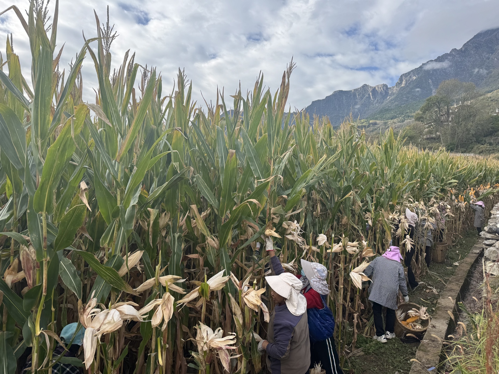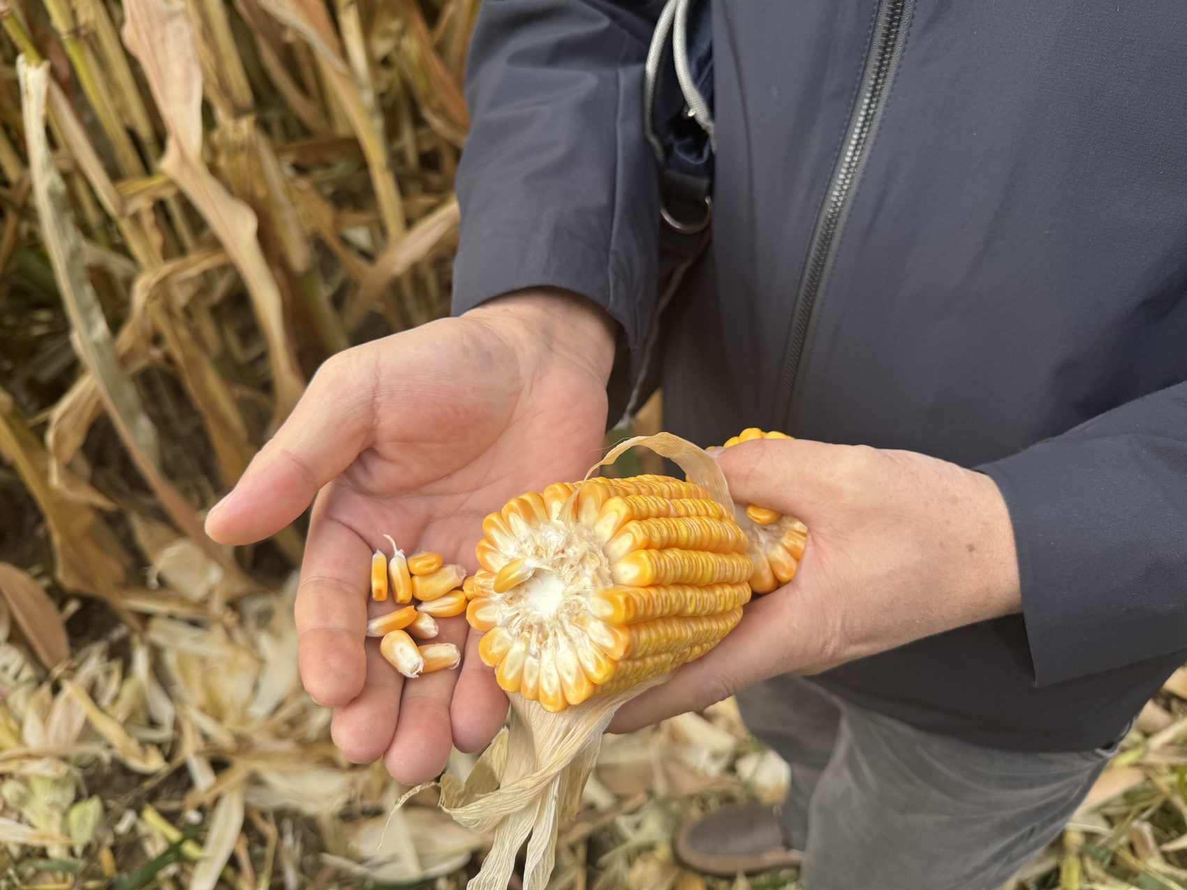 玉米地里的丰收景象。