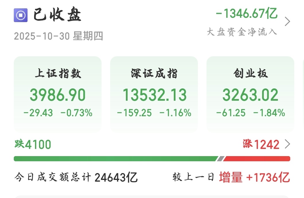 10月30日的A股,没能守住4000点整数关口的“阵地”。