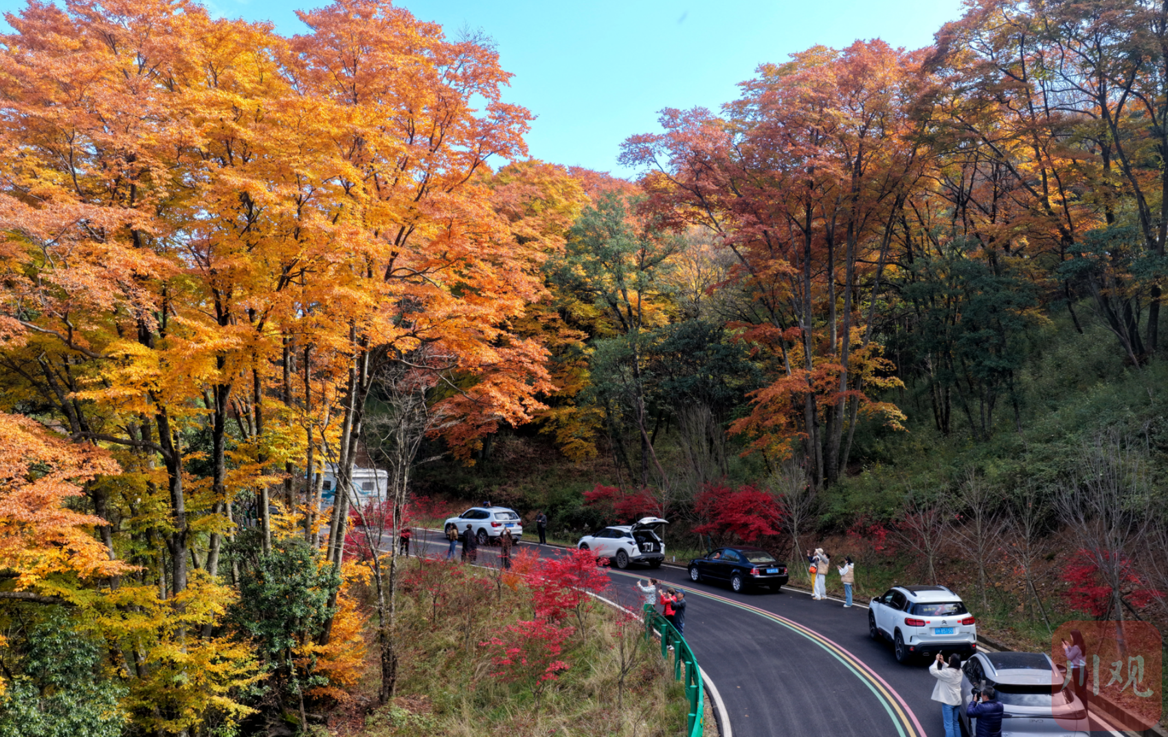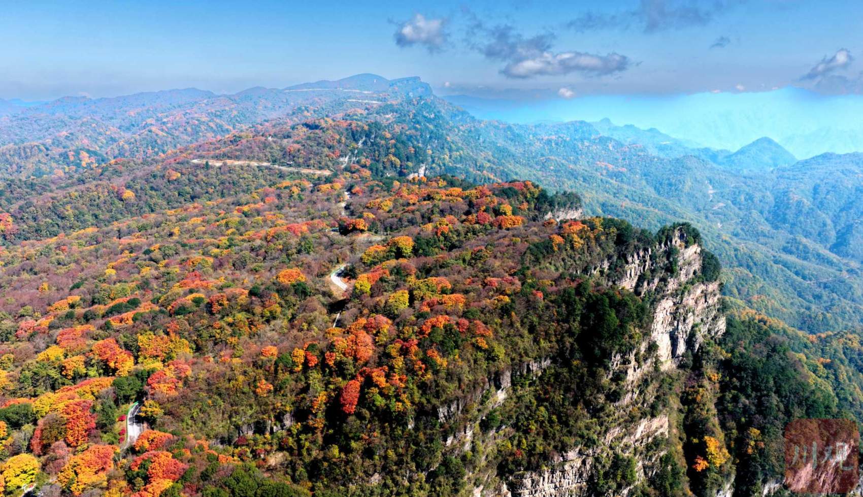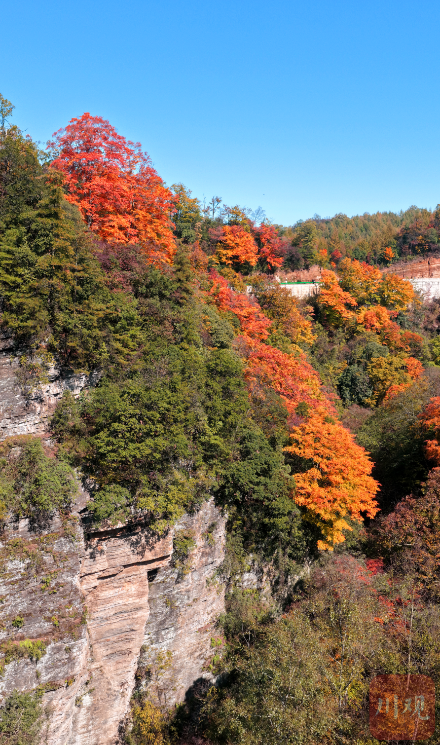 红的、黄的、橙的、紫的……10月30日,广元市旺苍县盐井河峡谷的红叶进入最佳观赏期。连绵山峦层林尽染、色彩斑斓,仿佛在向世人展示一幅壮美的画卷。
