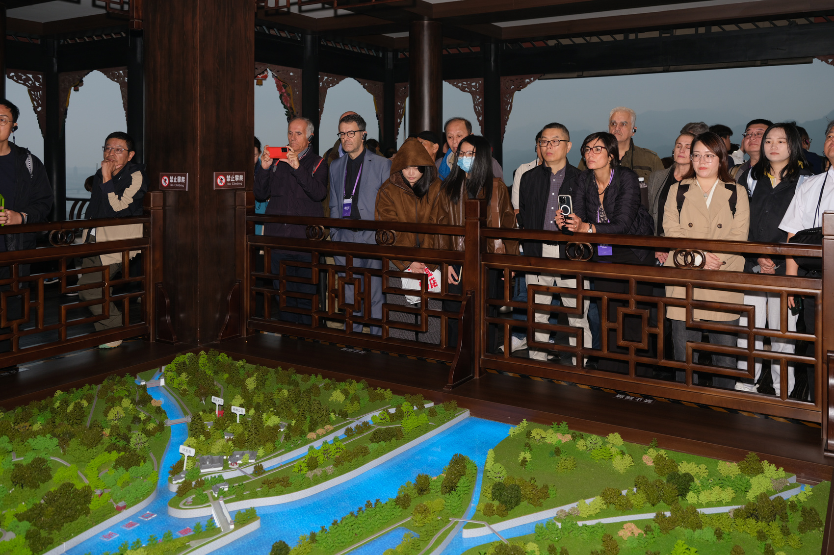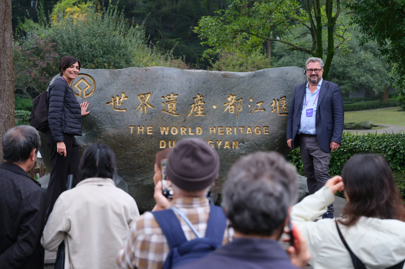 外国嘉宾们参观都江堰。