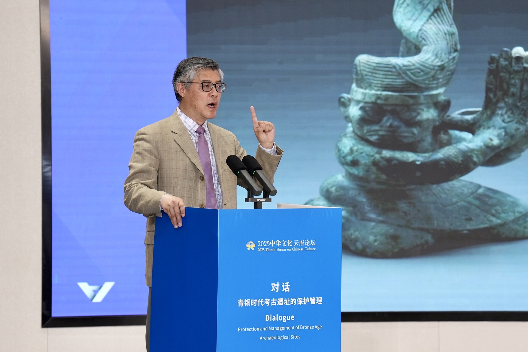 10月31日,在2025中华文化天府论坛“对话:青铜时代考古遗址的保护管理”平行论坛上,旧金山亚洲艺术博物馆名誉馆长许杰以《三星堆—金沙遗址的艺术特点》为题带来主旨演讲,系统阐释了三星堆—金沙遗址的艺术特点及其在中华文明多元一体格局中的独特地位。
