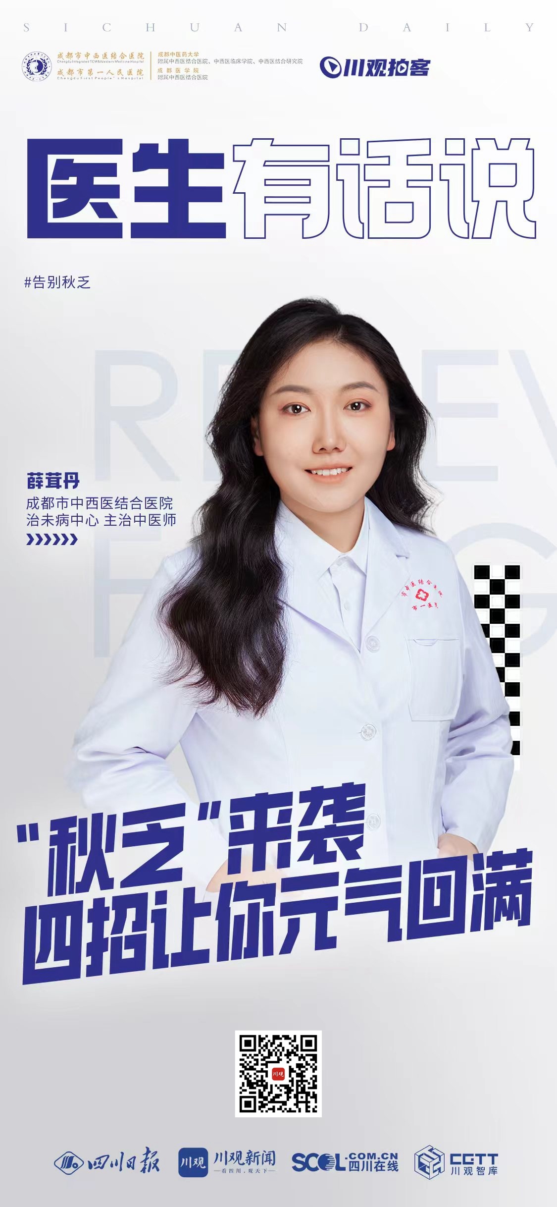 秋季正是“治未病”防范于未然的好时机。本期栏目,来自成都市中西医结合医院治未病中心的主治中医师薛茸丹,就跟大家分享秋季如何养生调理,告别“秋乏”。