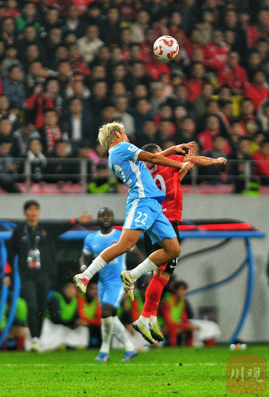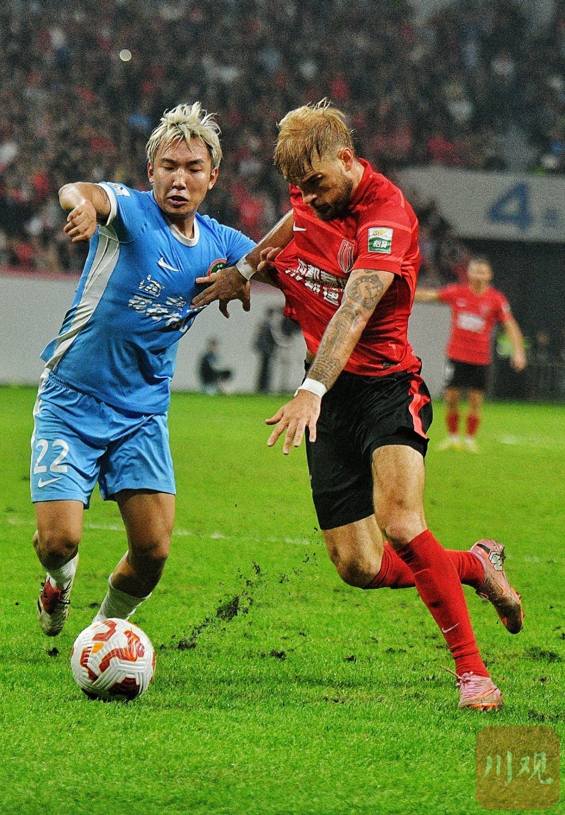 在上一轮联赛痛失好局的成都蓉城本轮联赛运气不佳。虽然在本轮联赛开始之前,他们仅落后上海海港1分,但主场面对老对手河南队,成都蓉城赢面并不大——因此在比赛开始之前,成都蓉城主教练徐正源将本场比赛喻为了“一场战争”,足见本场比赛对于成都蓉城的重要性。为了全力取得比赛的胜利,徐正源还是派出了除韦世豪在外的全部主力阵容,后者因为大腿肌肉拉伤,已经缺席了好几场比赛。开场之后,成都蓉城大打攻势足球,并在第20分钟由严鼎皓率先打破了场上僵局。可惜好景不长,河南队在下半场刚开场便由钟义浩扳平了比分。河南队在第83分钟由何超再进一球,将场上比分改写为2∶1。