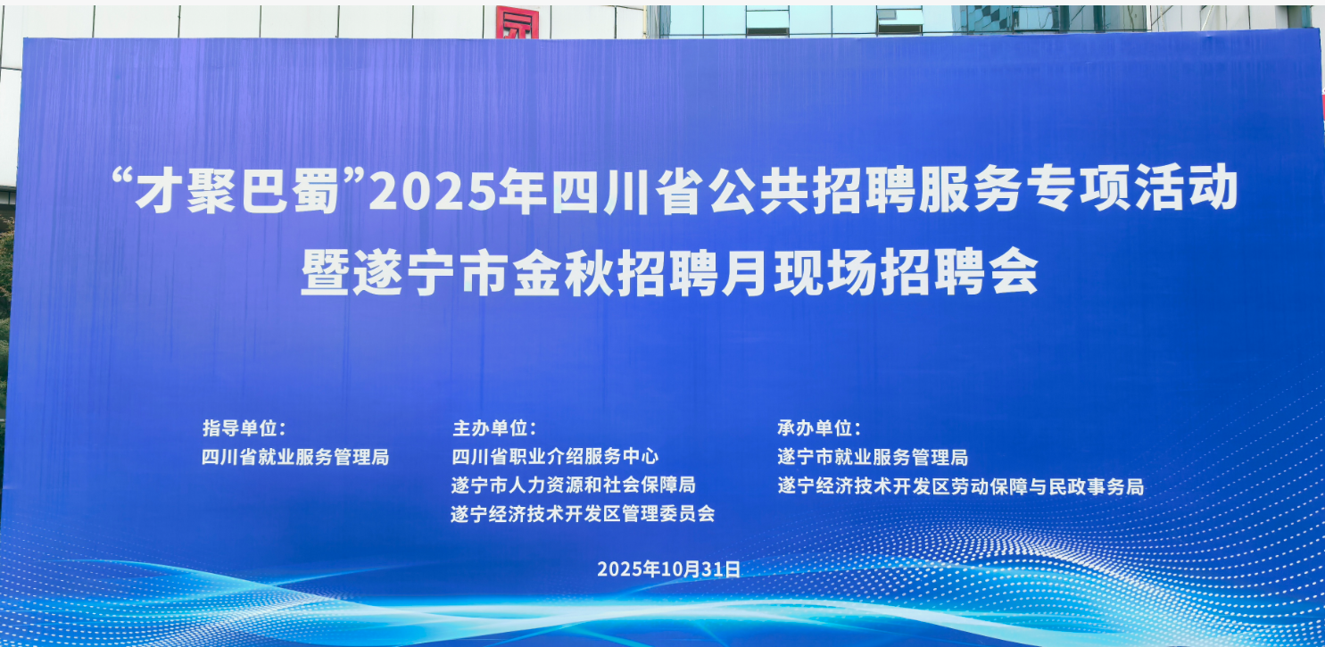 近日,在四川省就业服务管理局指导下,由四川省职业介绍服务中心联合各地人社部门举办的“才聚巴蜀”2025年四川省公共招聘服务专项活动持续在遂宁、达州,以及相关高校举行,点燃金秋就业服务热潮,为各地产业发展和人才合理流动搭建高效对接平台,助力高校毕业生等青年群体好就业,就好业。