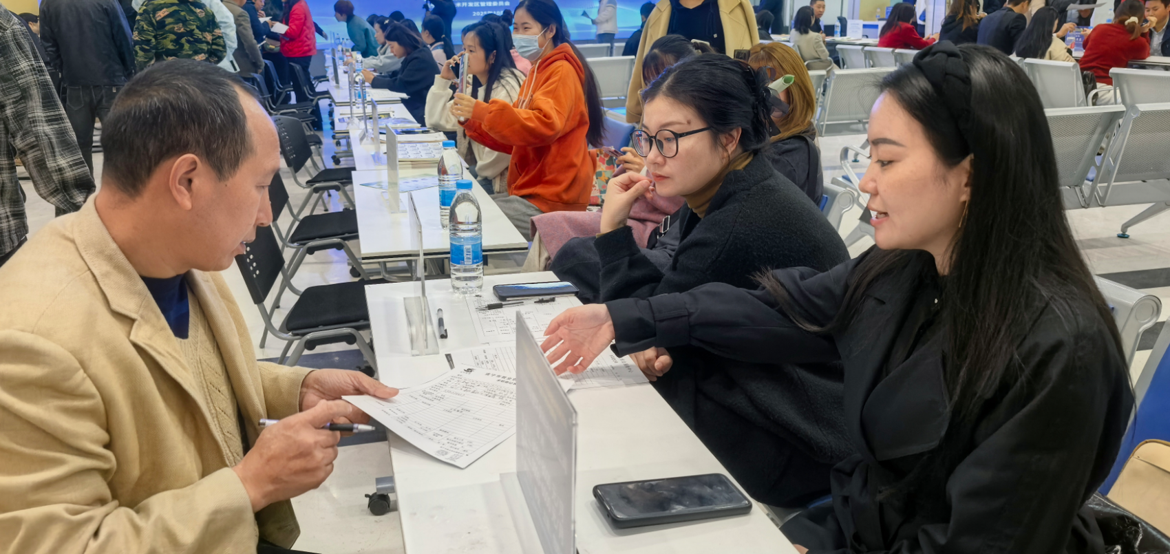 10月30日上午9时,位于遂宁市就业创业服务中心的招聘活动现场,各企业展位前人头攒动,企业代表手持岗位清单热情“吆喝”推介,求职者则手持简历穿梭其间,不时驻足与招聘人员深入交流。