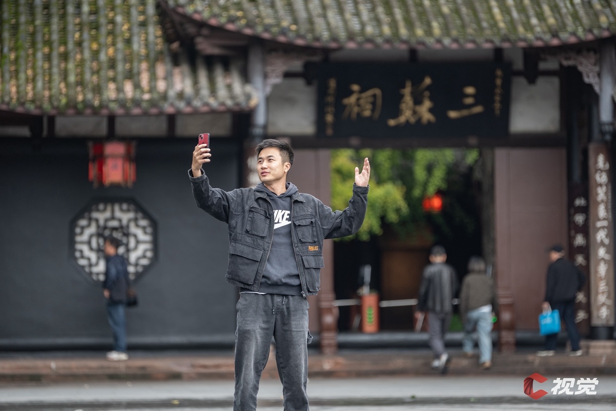 10月24日,欧袁浩在场下回归博主身份,在眉山三苏祠前录制视频。